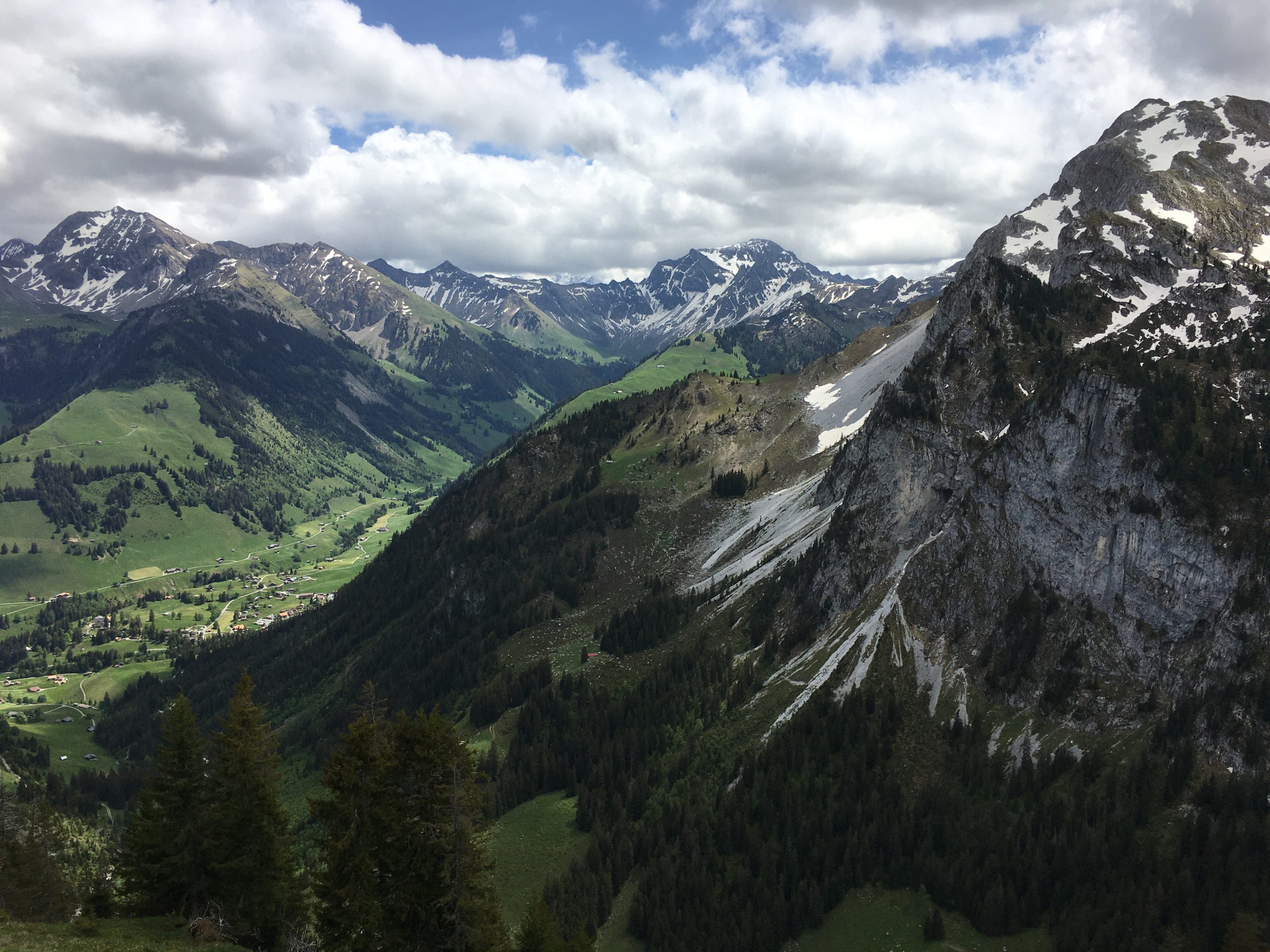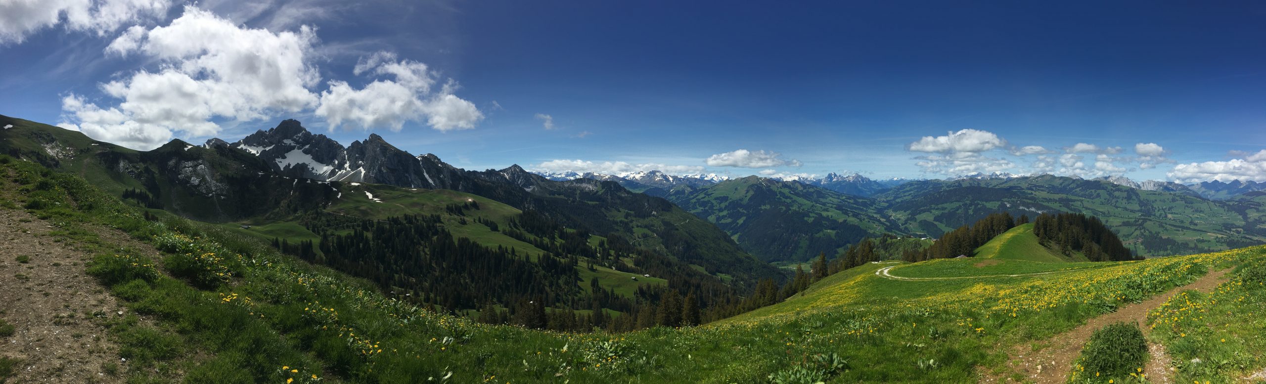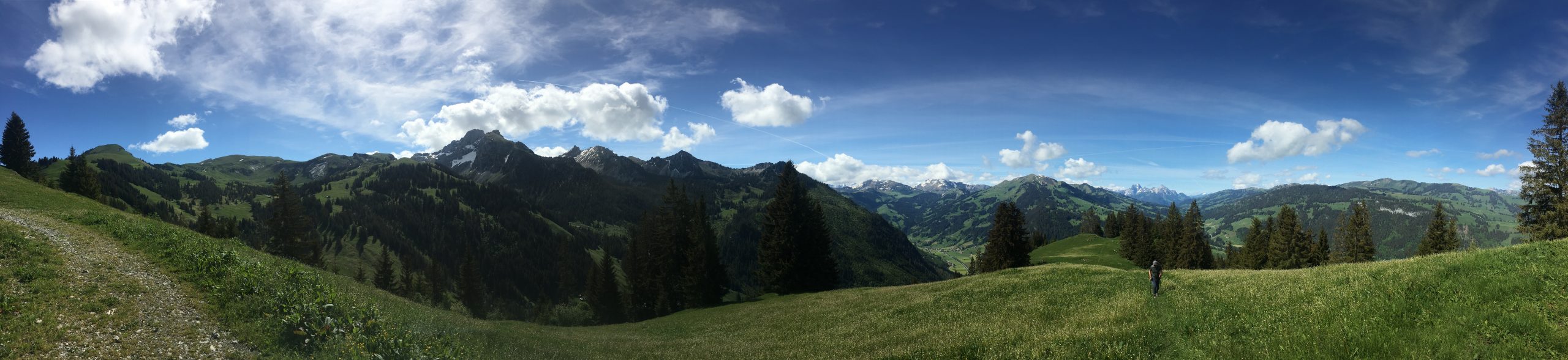 Der steile Start nach dem Zweisimmer Flugfeld ist ziemlich streng, doch mit jeder Kehre wird die Aussicht auf das Simmental und die umliegenden Berge besser, im Nu sind die 600 ersten Höhenmeter vorbei.