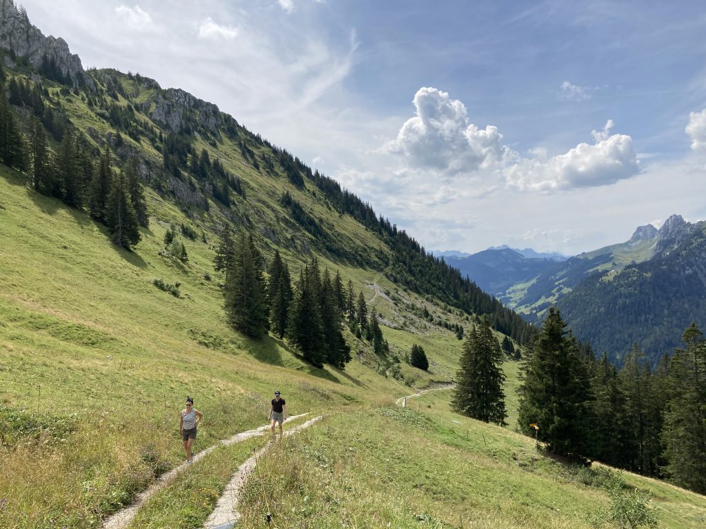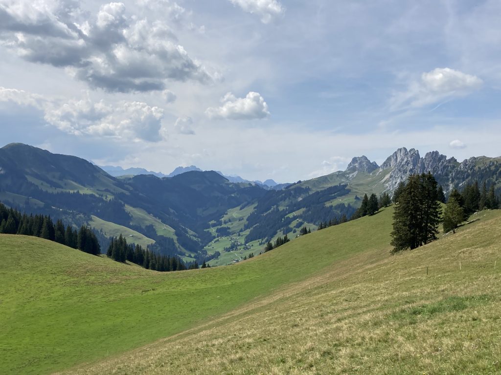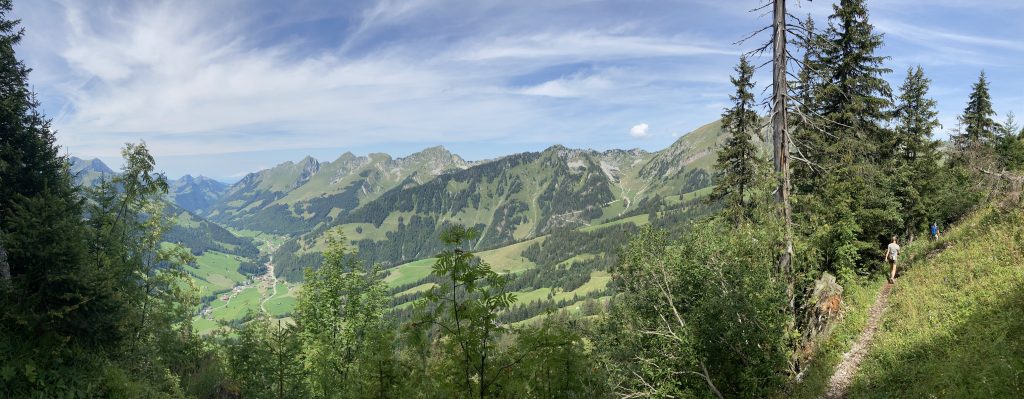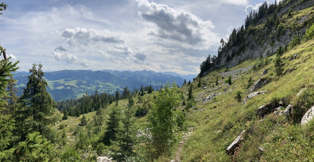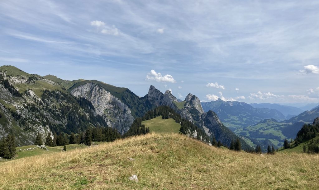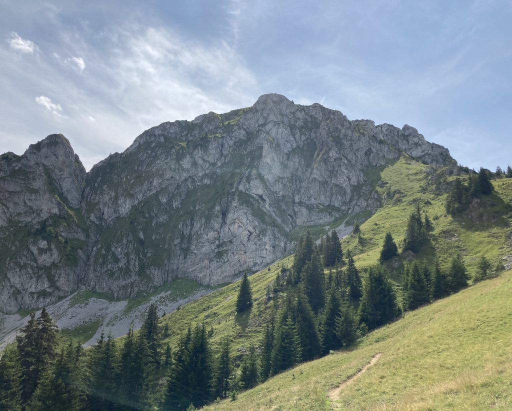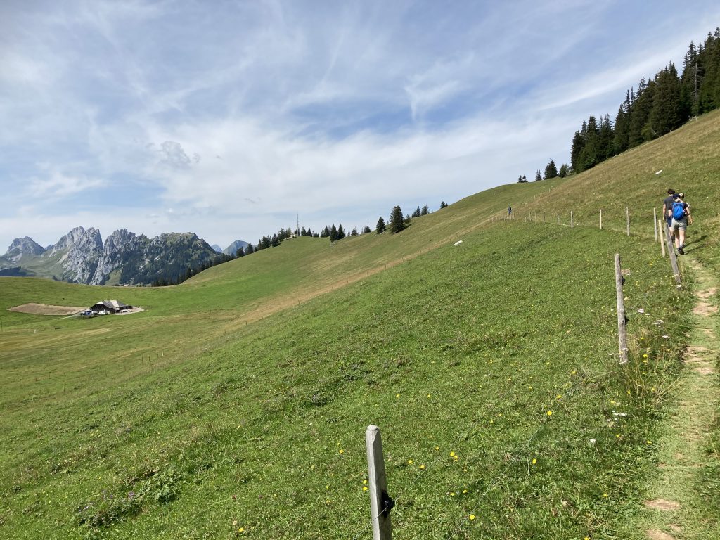 Gleichentags zieht es uns auf dem Jaun am Nachmittag zu einer kleinen Entdeckungstour in die andere Richtung als zum Hundsrügg, nämlich zur Bäderhore. Vor ein paar Jahren hatte ich sie mit Nina und Tochter Amélie von der Westflanke her bestiegen, heute planen wir sie auf dem Rundweg – ja der Name sagt’s – zu umrunden. Alles in allem eine abwechslungsreiche und kurzweilige Wanderung mit ein paar echten Hinguckern. Kleiner Tipp: Wer auf der Alp Grosse Bäder einen Imbiss vor oder nach dem Rundweg einplant, darf mit dem Auto die grösstenteils asphaltierte und nicht gerade spannende Anreise vom Jaun her mit dem Auto vornehmen.