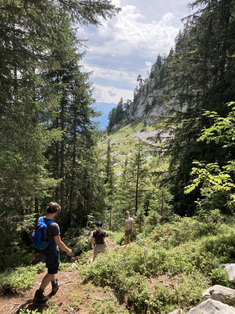 Nach dem sanften Anstieg geht es vorbei am rechts abgehenden Bergweg hoch zur Spitze runter hinter die Bäderhore hin zur Flue, wo sich ein schöner Ausblick aufs Trimlehorn und die Mittagsflue eröffnet. Der Walopsee lässt sich leider nicht blicken, da fehlen uns ein paar Höhenmeter… Von da an wird der Weg steiniger und nach ein kurzen Pause bei einer wunderschön gelegenen Berghütte beim Buufeli, geht’s in zwei langgezogenen Kehren wieder zur Alp Grosse Bäder. Ein perfekter Ausflug für einen erholsamen Sonntag-Nachmittag… nur der Waldgnom weiss uns aus der Ruhe zu bringen! 🙂