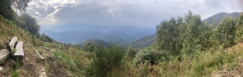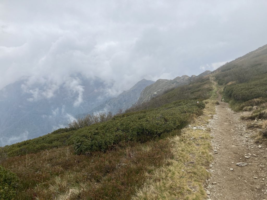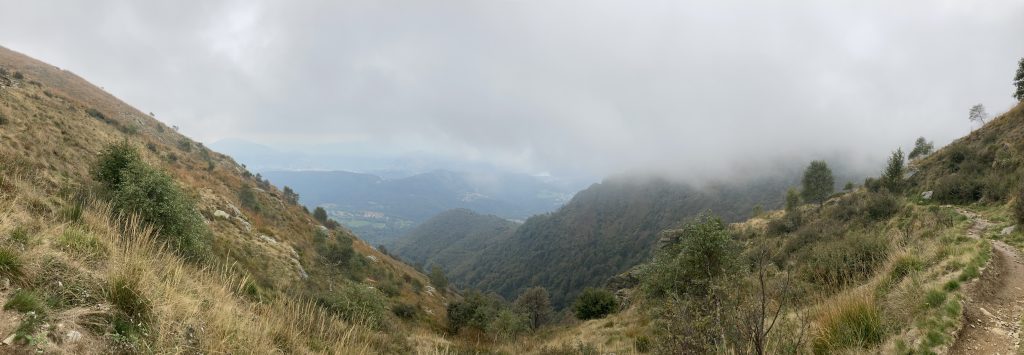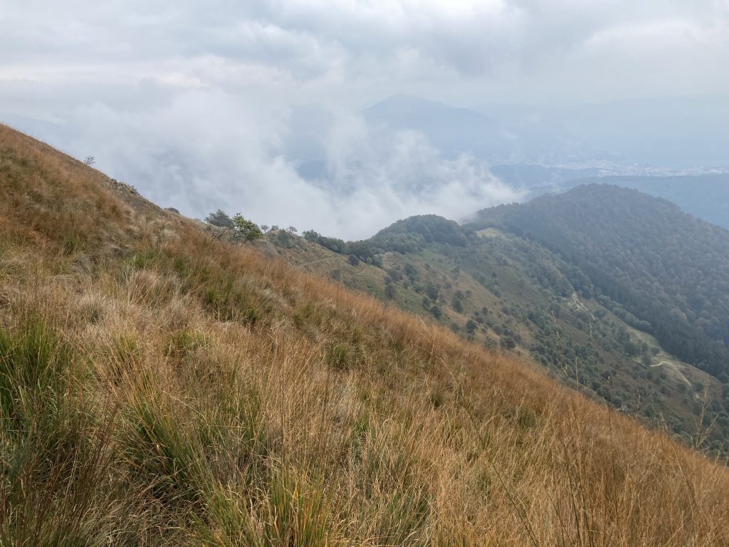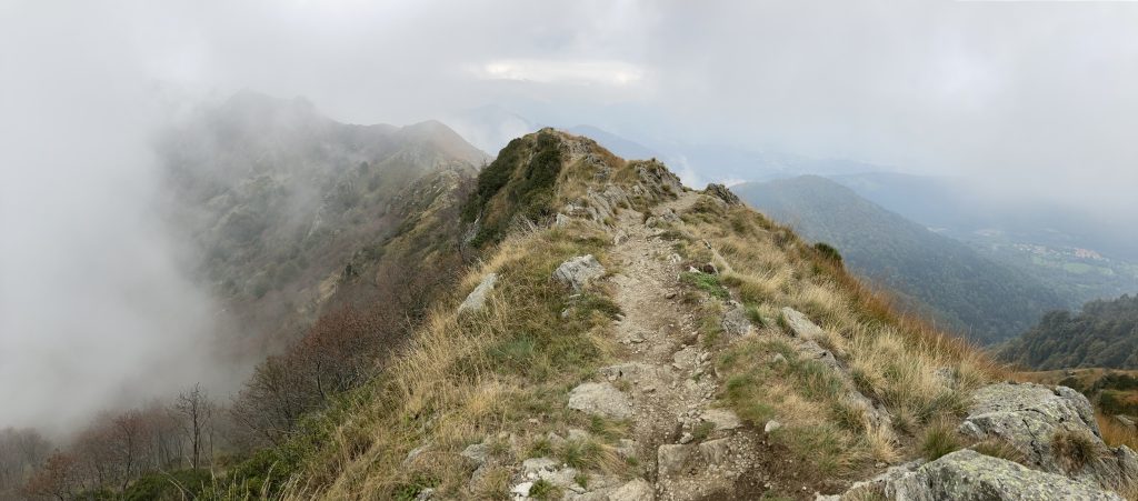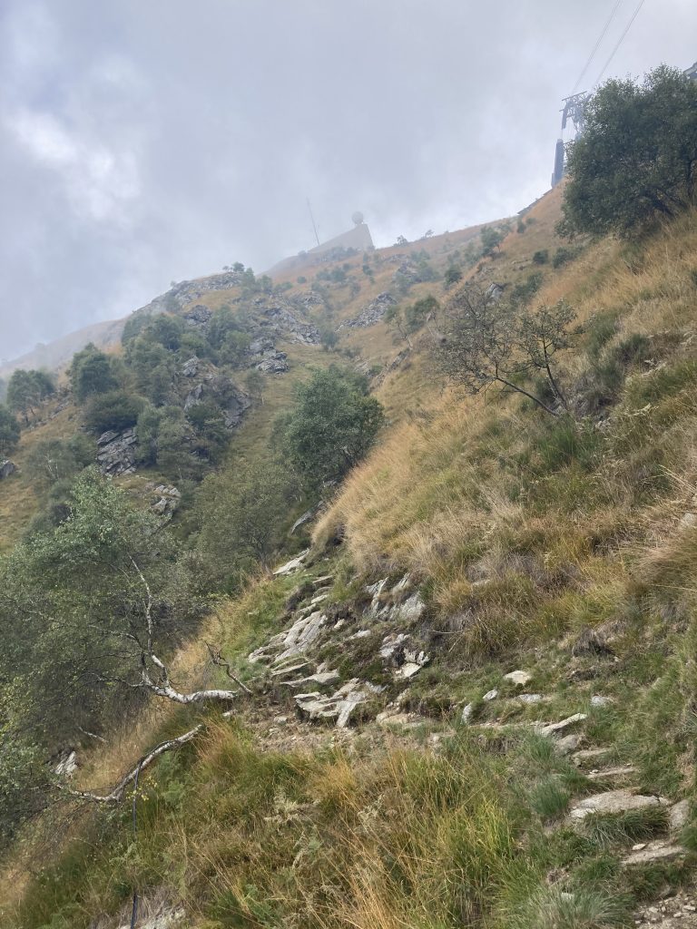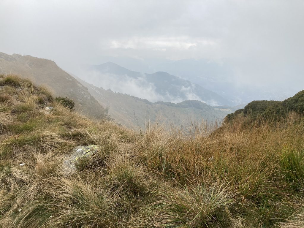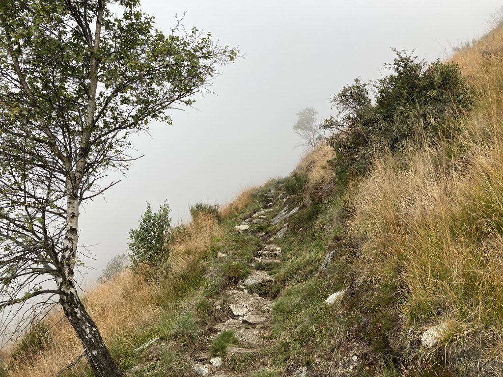 Wie in meinem vorangehenden Post angetönt, endete meine Tour nicht im beschaulichen Caslano auf dem ruhigen Campingplatz am See, sondern auf dem lärmigen TCS-Camping in Agno. Grund hierfĂĽr war, dass ich in den Bergen nicht rechtzeitig meine Reservation bestätigt habe, in Corona-Zeiten kannte die Besitzerin kein Pardon. So startete ich halt um sechs Uhr in der FrĂĽh nicht direkt per pedes sondern musste vorher noch mit dem Ponte Tresa – Mandarinli zwei Stationen fahren. Frisch geduscht und voller Tatendrang begann ich den Aufstieg, vorerst noch in völliger Dunkelheit… Dunstverhangene Wäldchen wechseln zu mit Nebelschwaden versehenen Hängen, und so gelange ich zĂĽgig auf den kĂĽhlen Monte Lema.