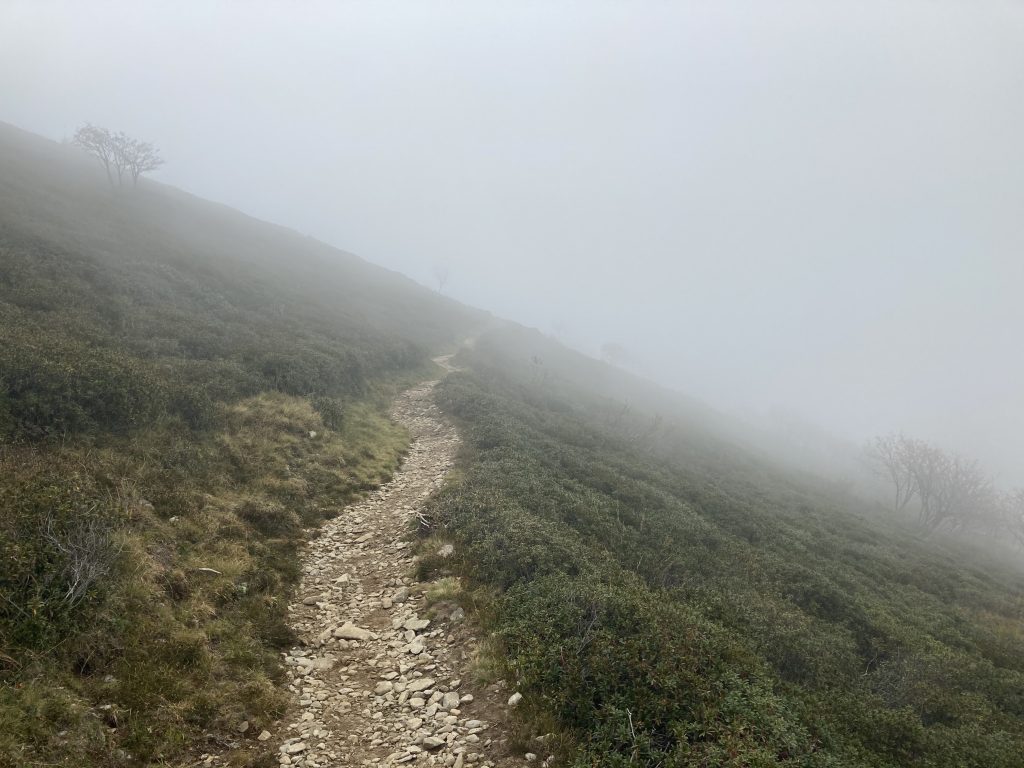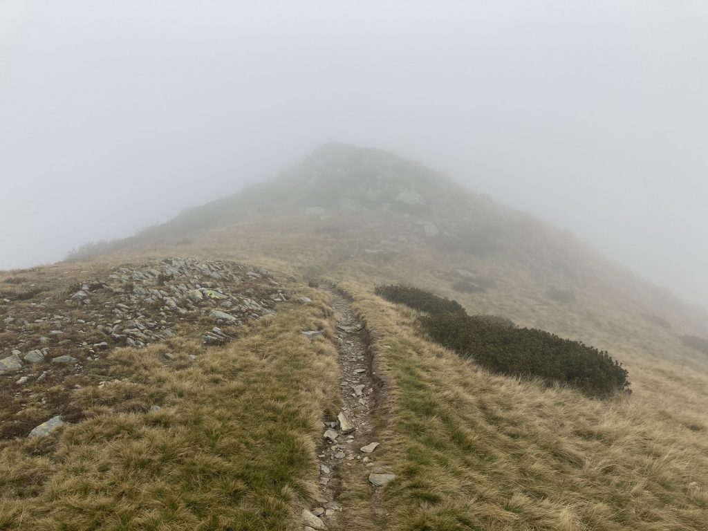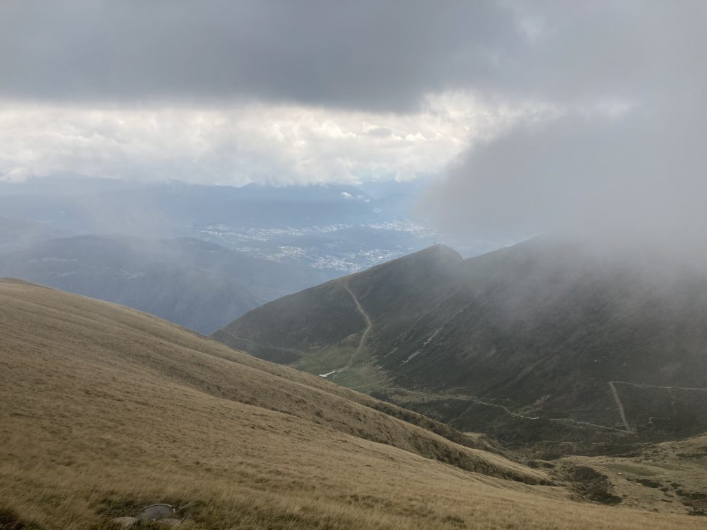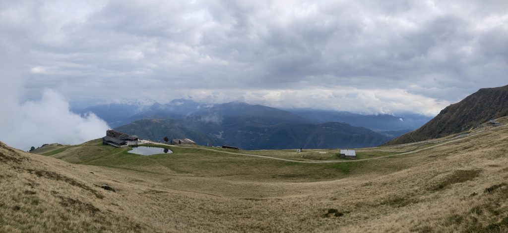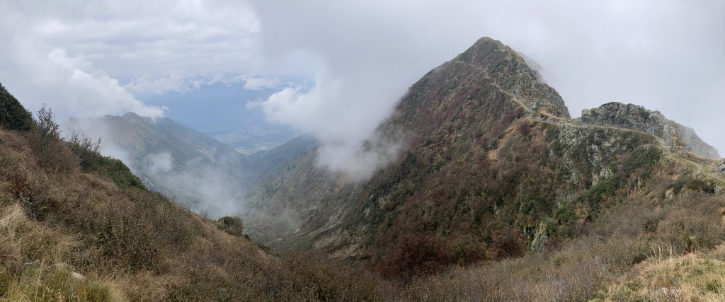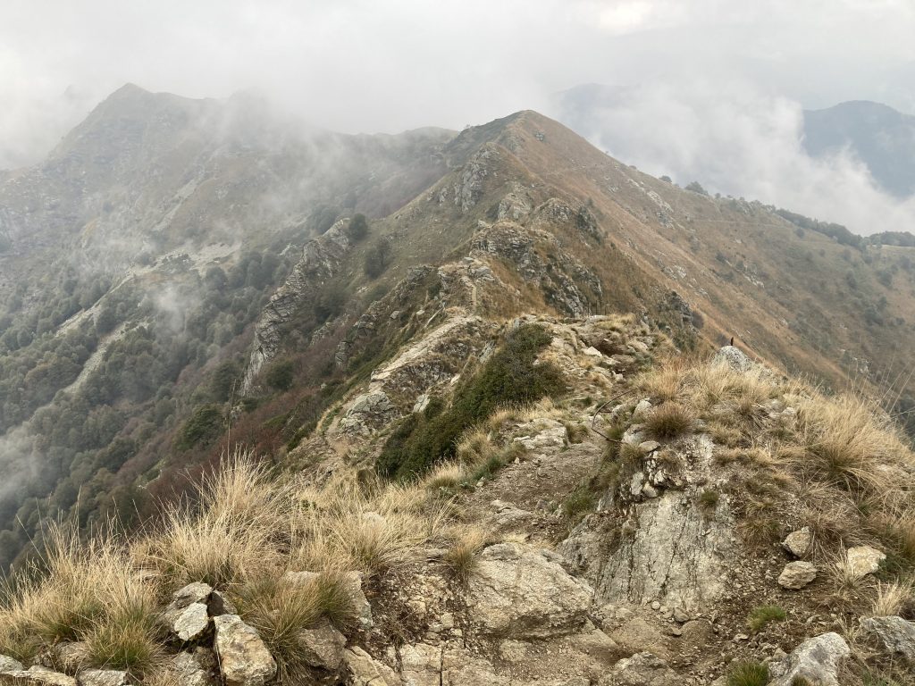 Von da weg beginnt der reizvollste Teil der Gratwanderung, der gar bei quasi null Sicht spektakulär ist. Ich hatte mir erhofft zumindest einen Blick auf die Viertausender zum Westen hin werfen zu können, das wurde nichts, dafür begegnete ich einigen neugierigen Hochlandrindern.