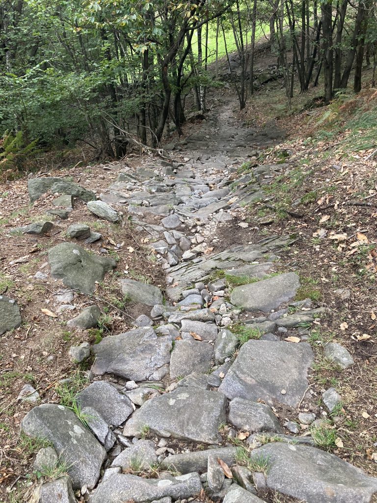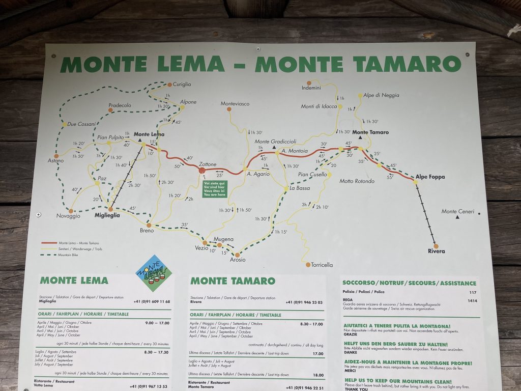 Der Aufstieg zum Monte Tamaro ist streng, und oben belohnt mich lediglich der Blick auf die schroffe Spitze der La Manèra. Der Abstieg zur Alpe Foppa ist nicht gerade spannend, in etlichen Kehren windet sich das Schottersträsschen zum Ausflugsort mit Rodelbahn und witziger Freilift-Kunst. Nach einem kurzen Nickerchen wird es merklich kĂĽhler und ich spute mich talwärts durch einen wunderschönen Kastanienwald. Das letzte Drittel des Weges ist dann schliesslich Tortur pur, so ausgewaschen ist der Wanderweg, technisch sehr anspruchsvoll. Ein kurzer Sprint in Rivera lässt mich den Zug nach Bellinzona erwischen…