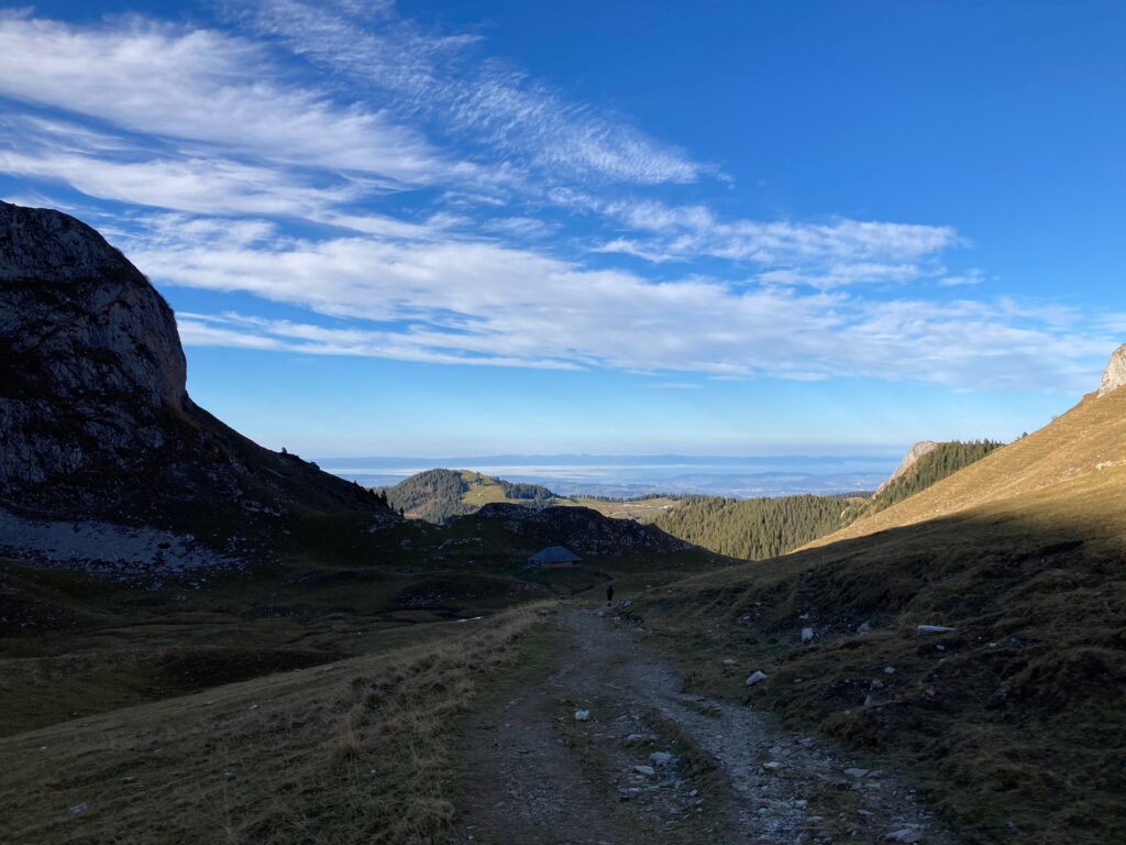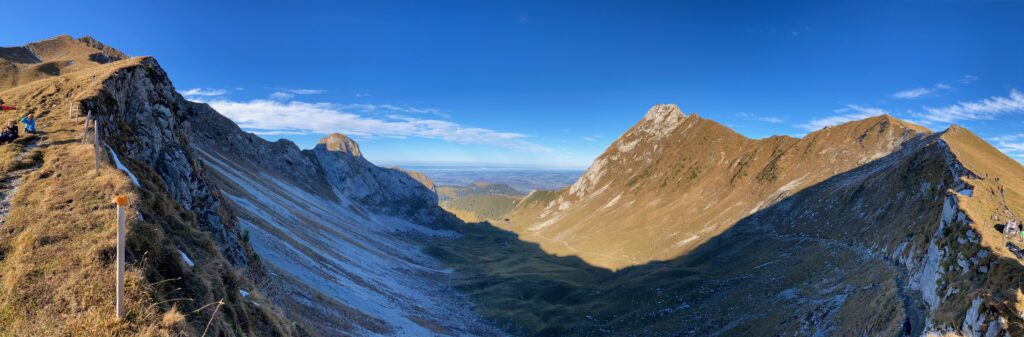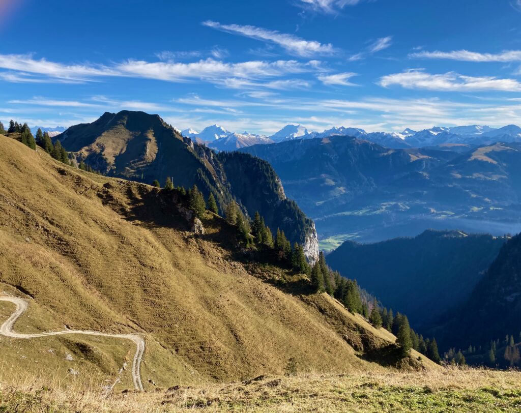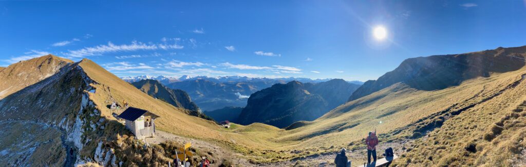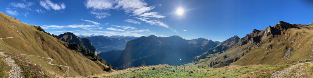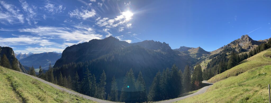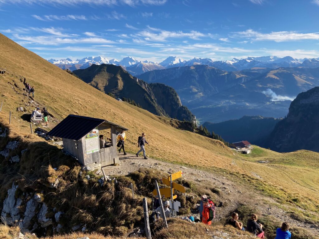 Nun geht es an die letzten rund dreihundert Höhenmeter hinauf zum Morgetenpass, wo wir die Aussicht aufs Berner Oberland geniessen und kurzum brav auf die Wanderer-Autobahn in Richtung Gantrischhütte einfädeln. Ab Gantrischhütte fahren wir schliesslich mit dem Postauto über Riggisberg und Thurnen zurück nach Bern.
