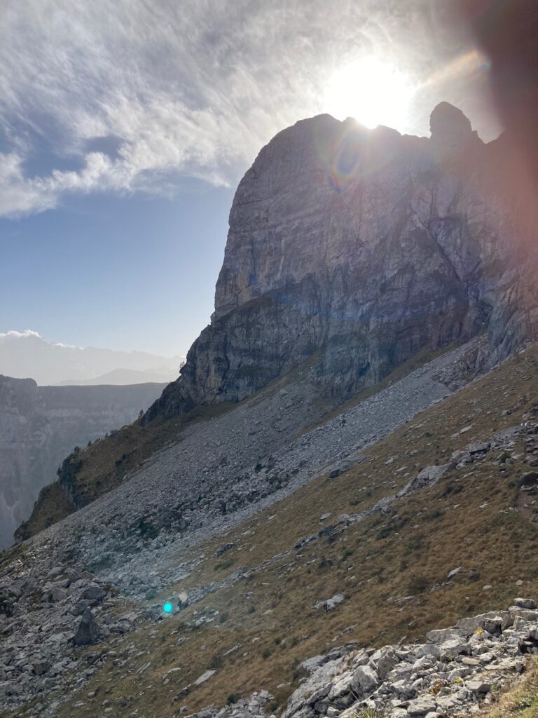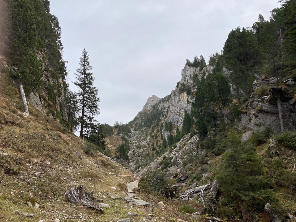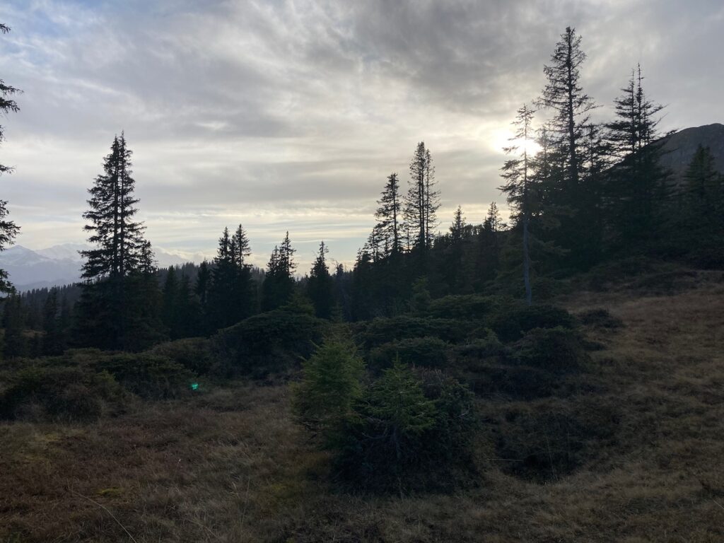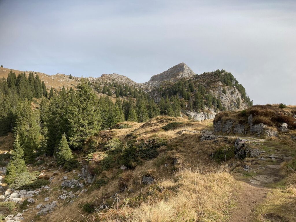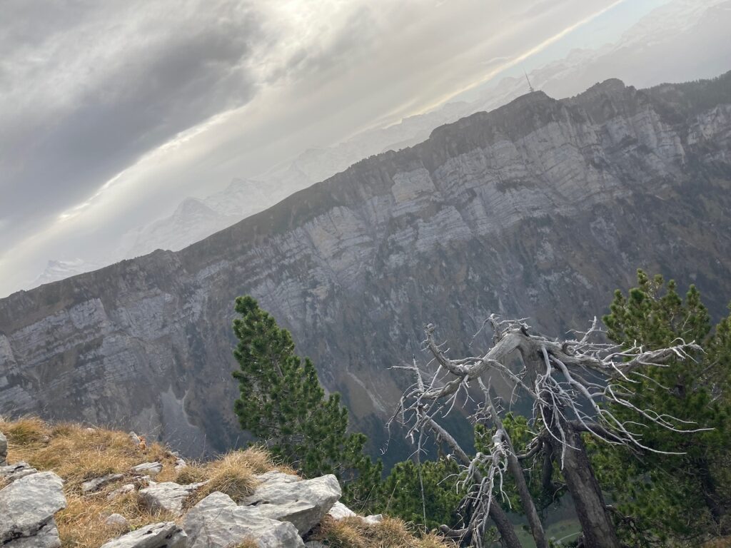 Etwas gequält erreiche ich die Alp unterhalb Chalberwang, wo ich – diesmal um Höhenmeter zu sparen – links ab direkt hoch zum Chumeli laufe. Wo wir vor ein paar Monaten noch quasi im Bachbett laufen mussten (siehe Hike#23) ist es heuer etwas trockener. Nach einer kurzen Pause packe ich den letzten grossen Aufstieg an, direkt hoch zur Loubenegg. Der Weg ist schlecht markiert (gilt auch nicht als offizieller Bergwanderweg!), an einer Stelle drifte ich ab und mühe mich mittels einer Kraxelpartie einen Abhang hoch. Hätte ich eigentlich nicht mehr gebraucht, doch langsam wird es merklich kühler auf der Schattseite des Gemmenalphorn… jetzt heisst es Zähne zusammenbeissen!