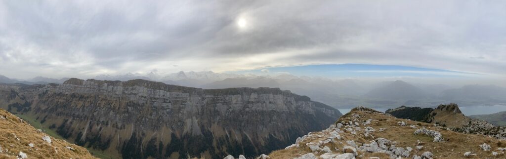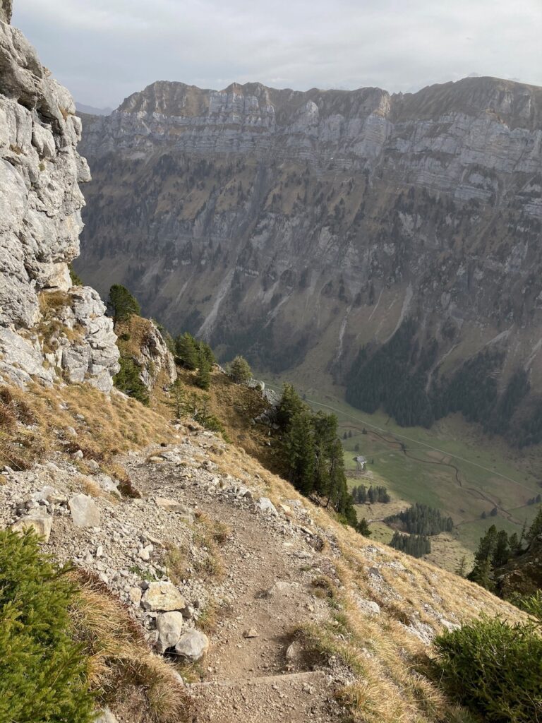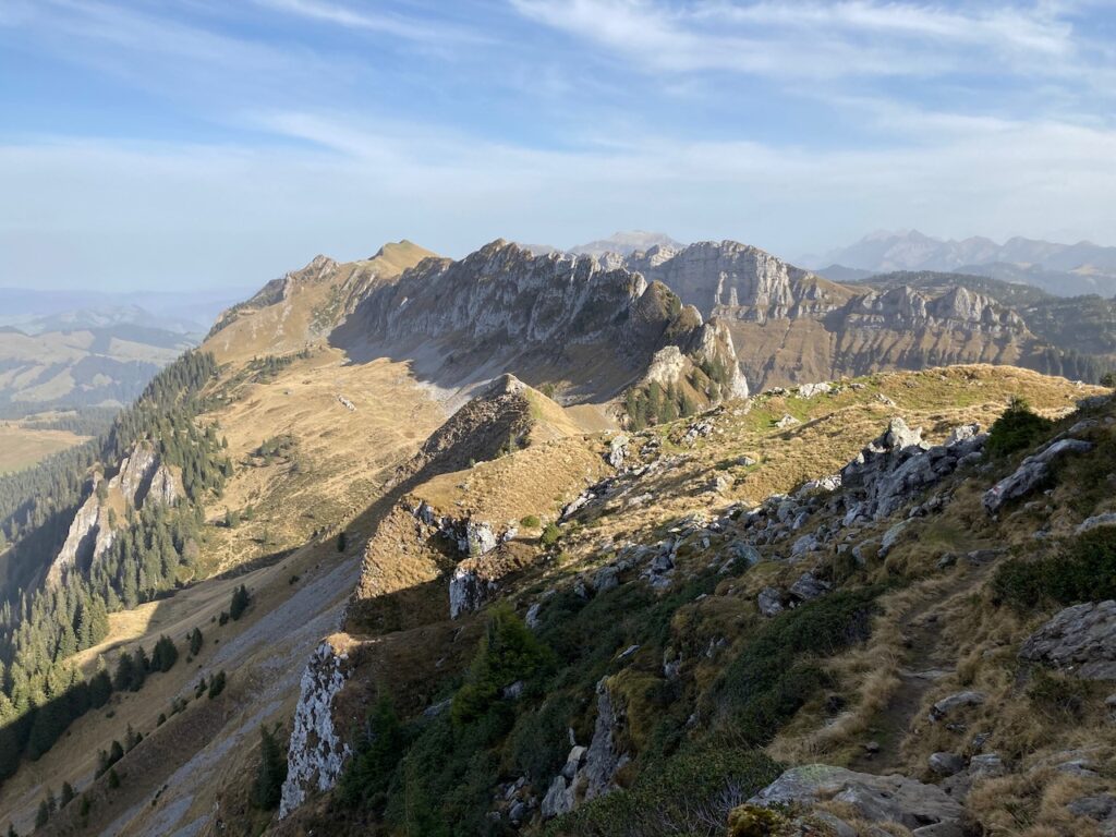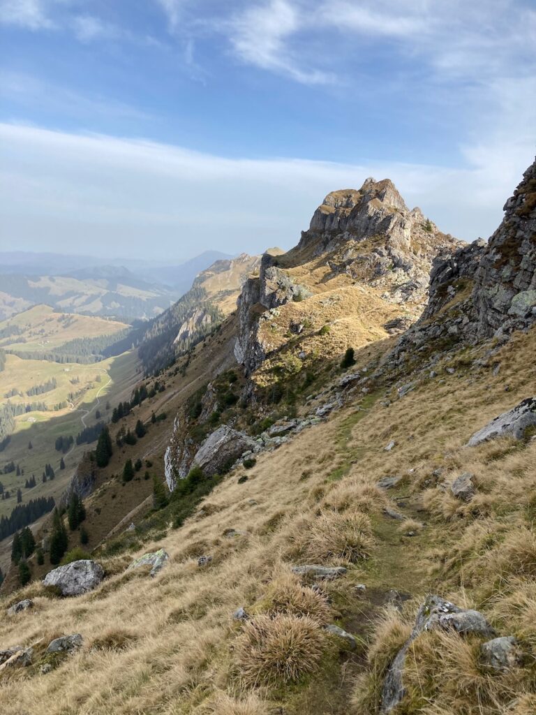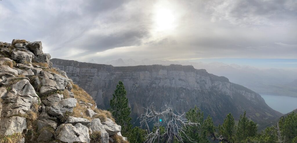 Der Abschnitt von Sigriswil bis oberhalb Wiler gibt kaum etwas her, doch danach geht’s hoch zu den Ralligstöck (Wanderweg ins Justistal wegen Steinschlag gesperrt!) und nach dem Wilerallmi steil bergauf durch den Wald bis zum Chäle, einem von allen Seiten m.E. nicht sichtbaren Tälchen. Der nördlichere Weg umgeht das Underbärgli und zieht sich abwechslungsreich bis unters Rothorn.