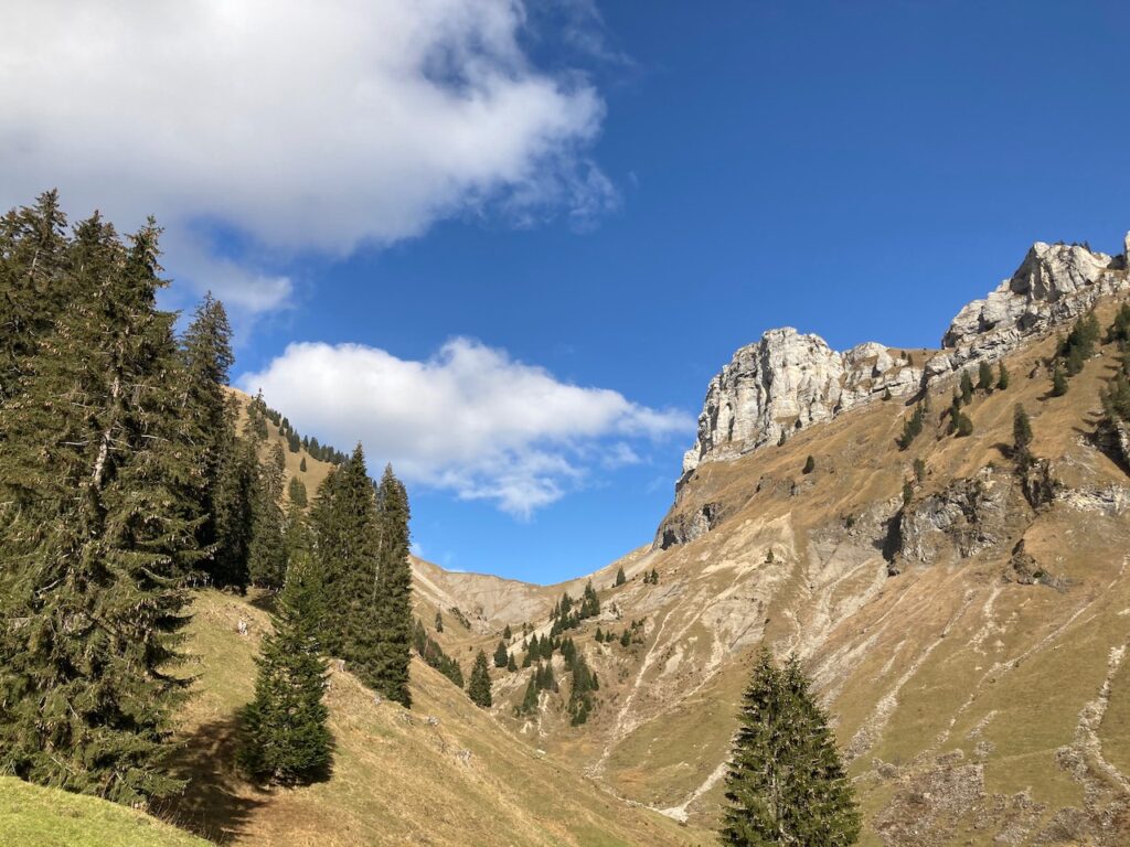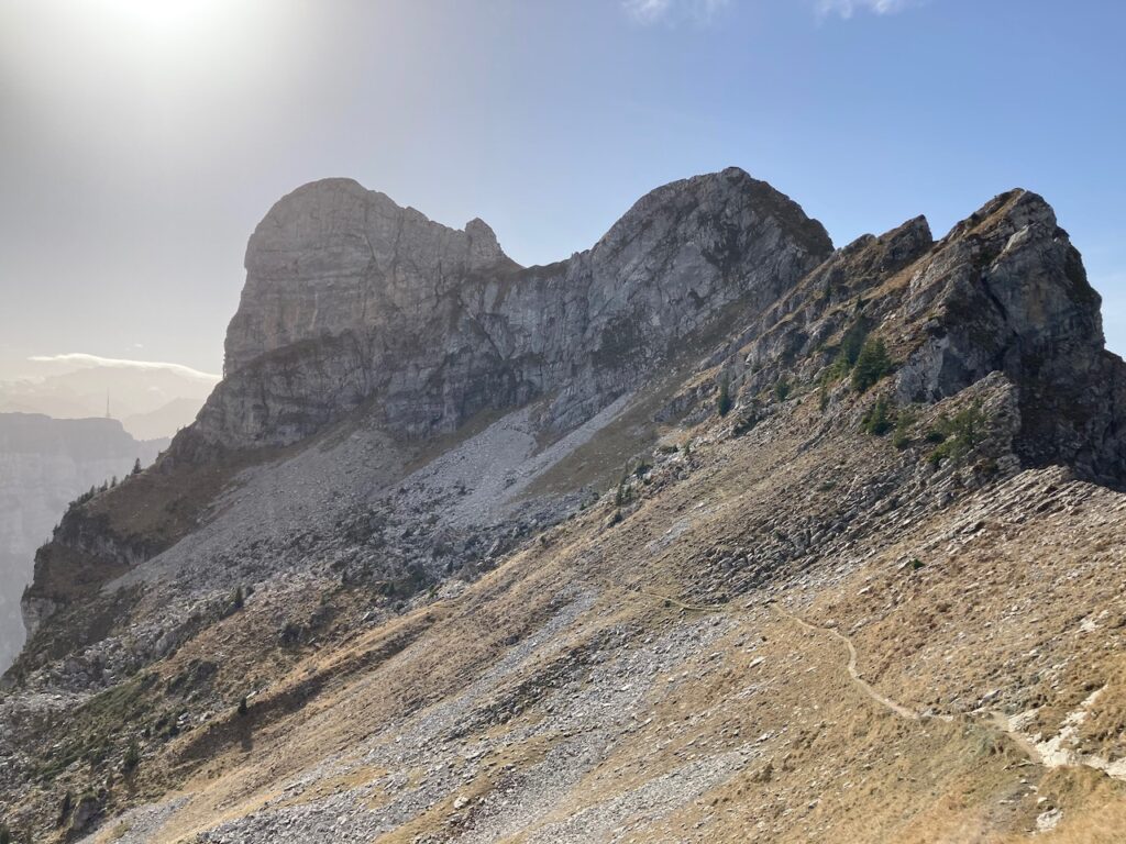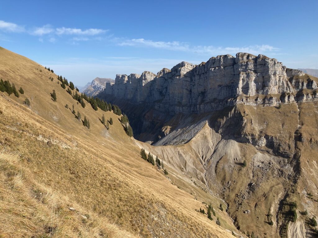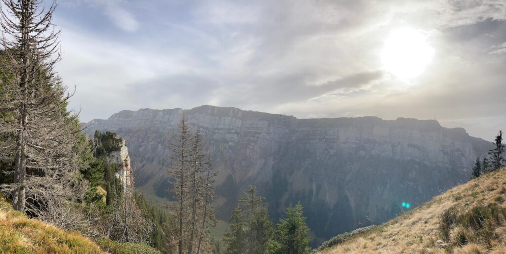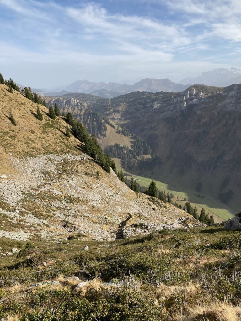Der Abschnitt von Sigriswil bis oberhalb Wiler gibt kaum etwas her, doch danach geht’s hoch zu den Ralligstöck (Wanderweg ins Justistal wegen Steinschlag gesperrt!) und nach dem Wilerallmi steil bergauf durch den Wald bis zum Chäle, einem von allen Seiten m.E. nicht sichtbaren Tälchen. Der nördlichere Weg umgeht das Underbärgli und zieht sich abwechslungsreich bis unters Rothorn.