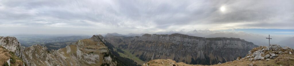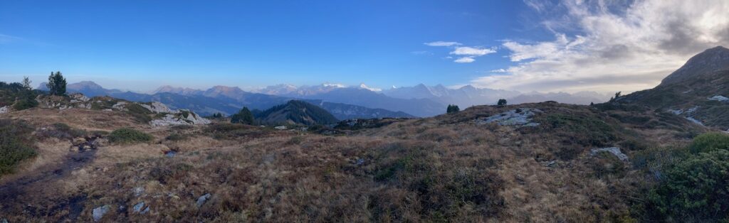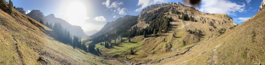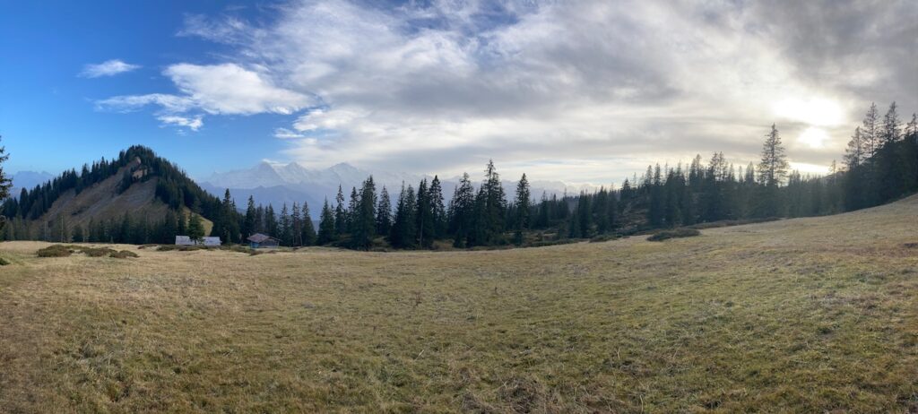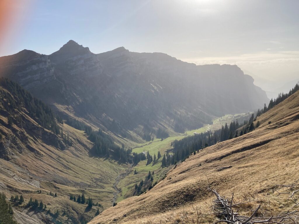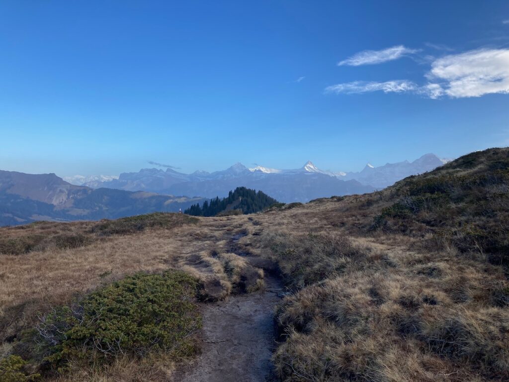 Auf dem offiziellen Wanderweg oben angekommen bin ich froh, wieder weiss-rot-weissen Markierungen folgen zu können, und der leichte Abstieg in Richtung Guggihürli erweist sich phänomenal schön. Von der Bäreney bis zu Ufem Stand steht zwar noch eine kurze Schlammschlacht auf dem Programm, doch danach macht die abwechslungsreiche Gratwanderung bis kurz vorm Skilift Staffenegg (fast) alles wieder wett. Auf feucht-nassen bis sumpfigen Wiesen geht’s dann schliesslich runter nach Habkern, wo das Postauto in Richtung Interlaken mich und etliche andere Wanderer abholt.