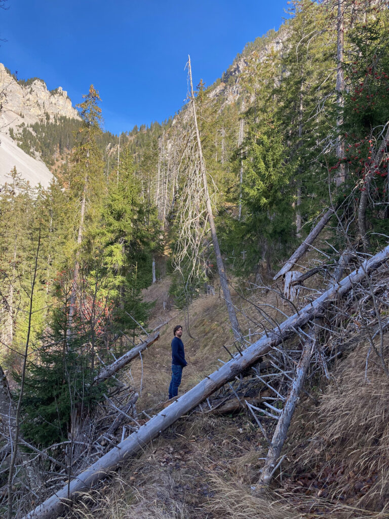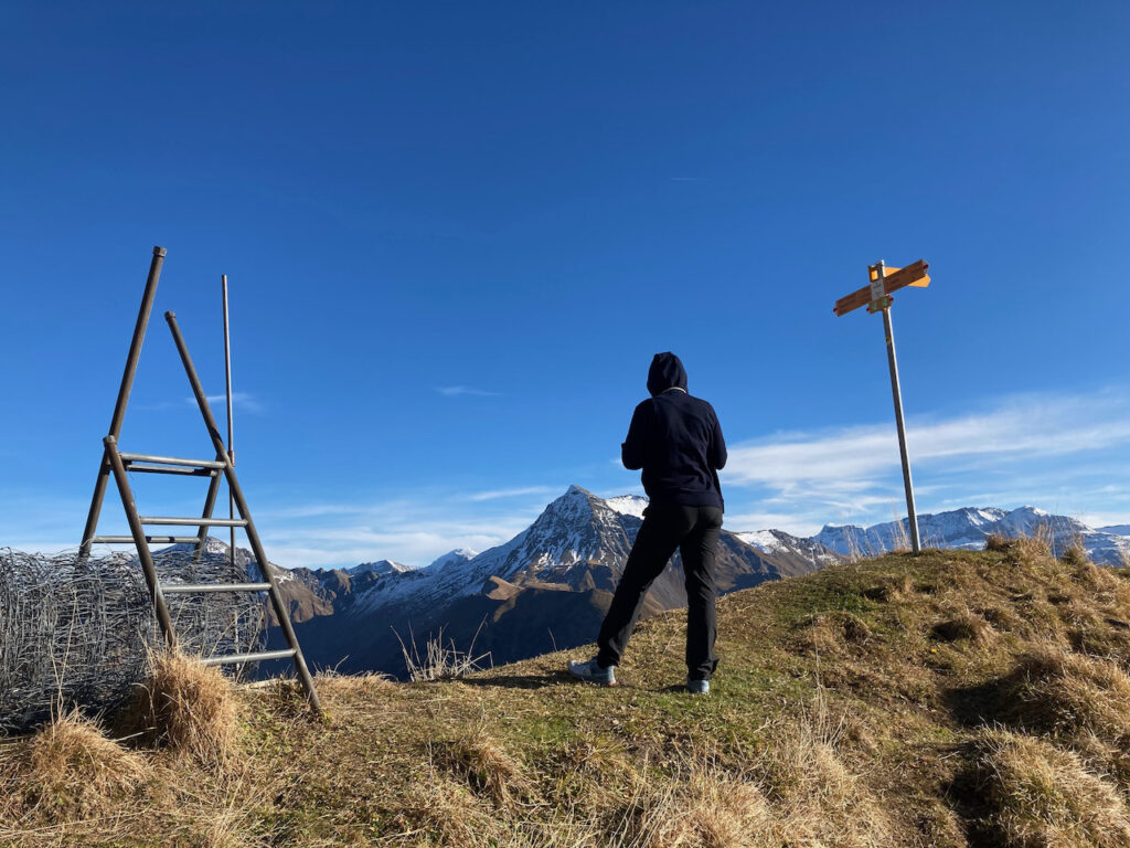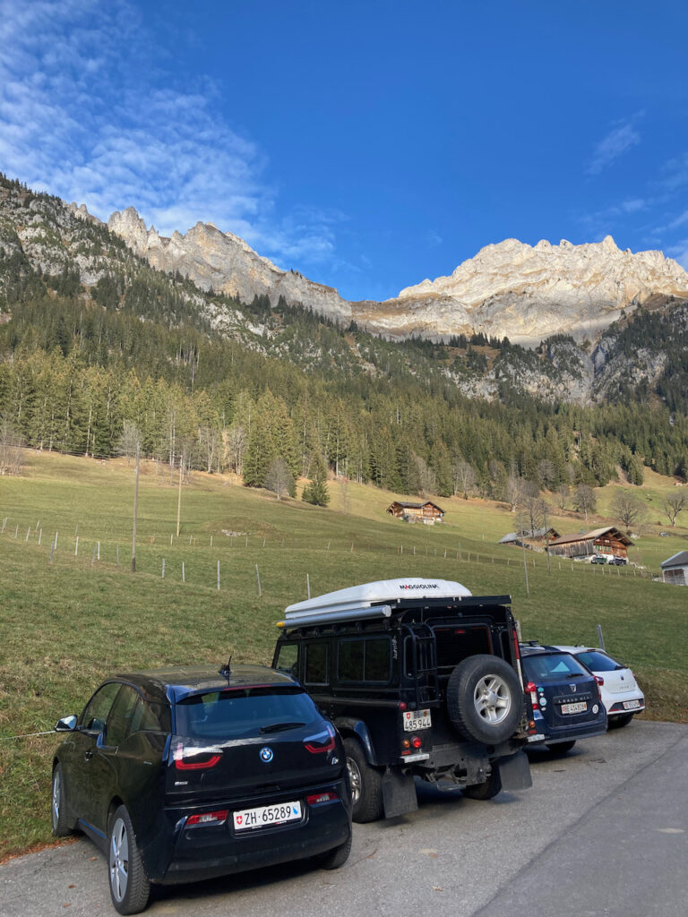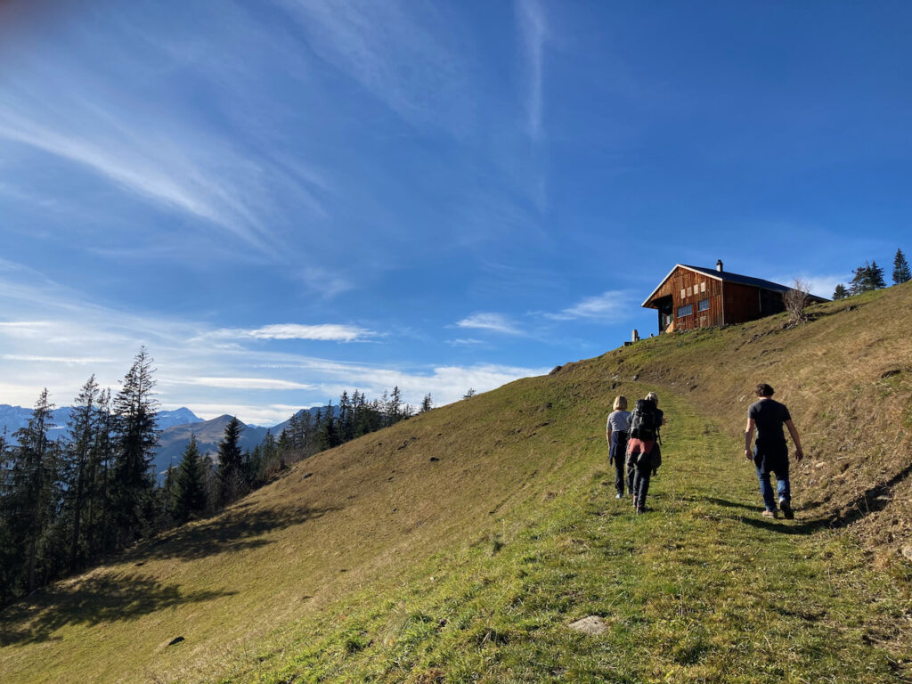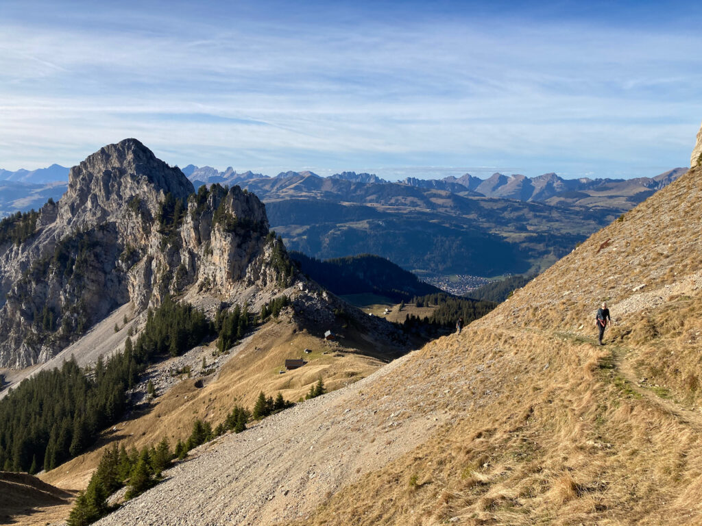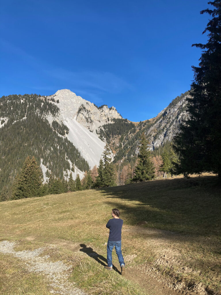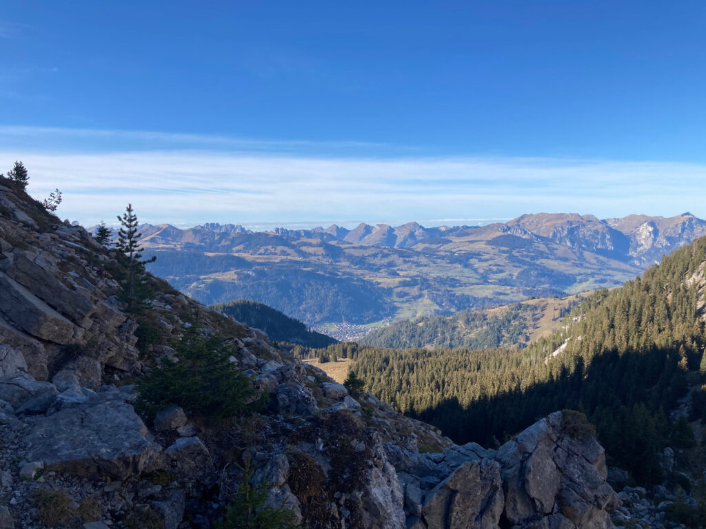 Mitte November und das Wochenende präsentiert sich wiederum überraschend mild, so steigen wir in unseren Elektroflitzer und treffen Ben und Nina beim Restaurant Alperose im Färmeltal ob St. Stephan. Zugegebenermassen hatte ich auch noch nie von diesem Tal gehört, es hat sich zu einem echten Hingucker erwiesen… doch seht selbst! Oberhalb von Stalden geht es schnurgerade durch duftend-gedüngte Wiesen hoch bis zum Höhenweg (siehe verlinkten Färmeltag-Weg am Ende dieses Posts), dann biegen wir links ab in Richtung Dachbode, die grossen Höhenmeter wollen wir uns nicht gleich zu Beginn antun. Von der Fernsicht in Richtung Plaine Morte – Ebene und den massiven Bergahornen angetan, machen wir einen grossen Bogen ums Schafbärgli, bis gegen Norden zwischen Gandhore und Brunnihore auf dem dazwischenliegenden Sattel unser Picknick-Plätzchen auftaucht… zuerst die Arbeit, dann das Vergnügen.