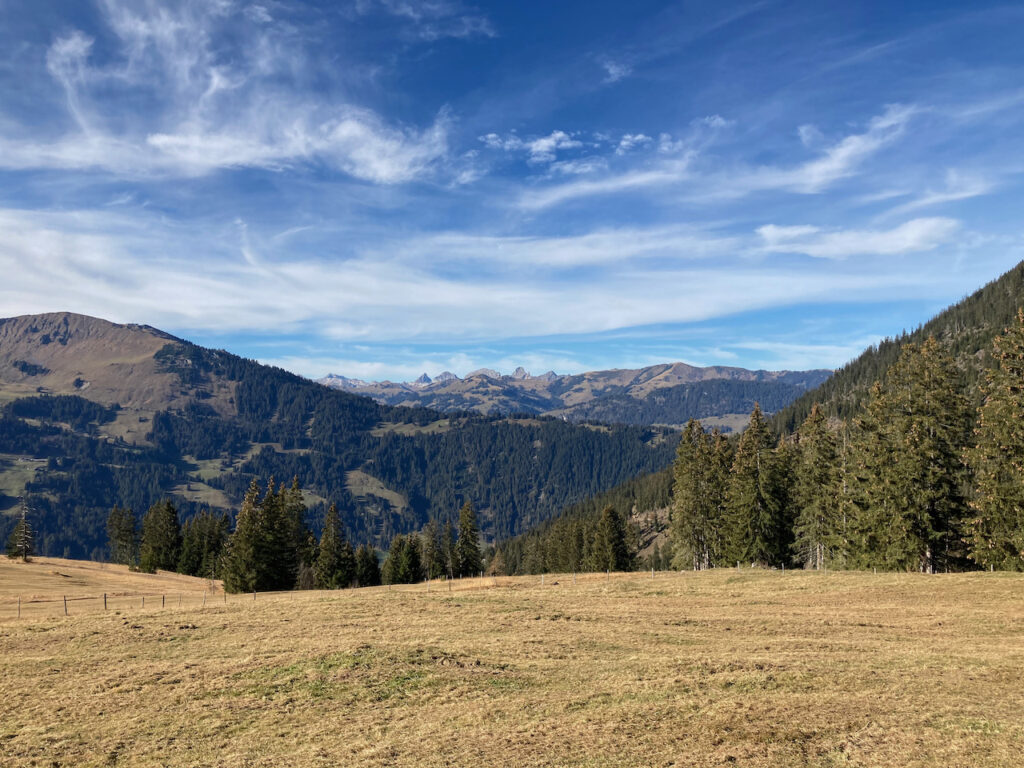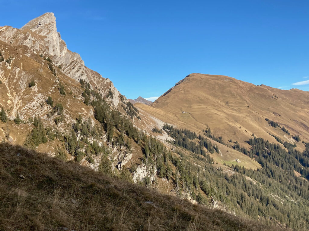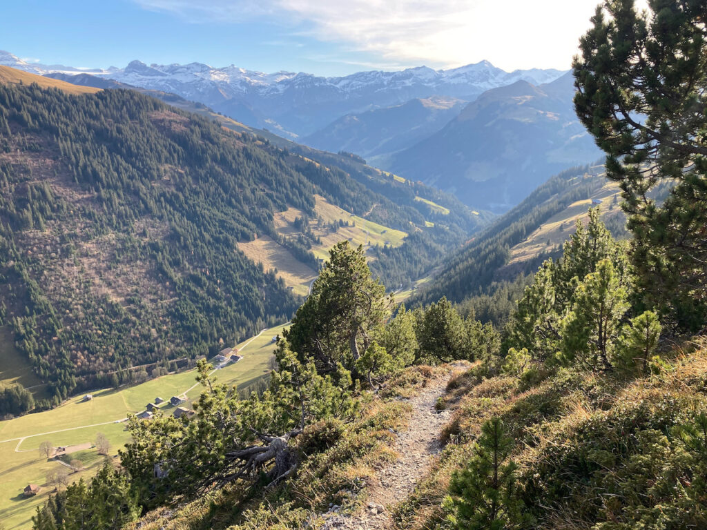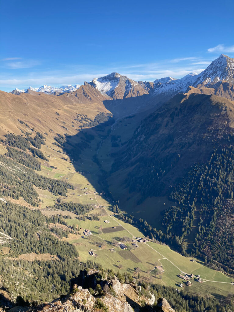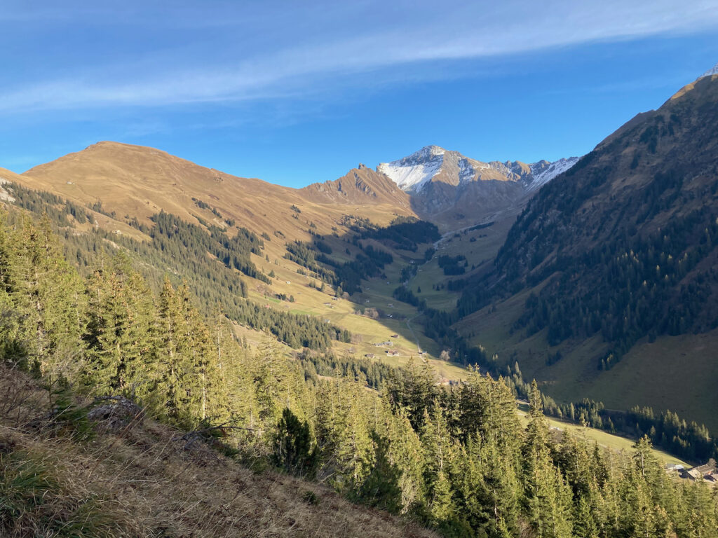 Die Aussicht von der Mieschflue ist phänomenal, und weckt den Gwunder in mir, ganz am Ende des Färmeltals, rechts von der Gsür geht ein Weg über die Furggi rüber nach Adelboden, das will ich mir mal etwas genauer anschauen…