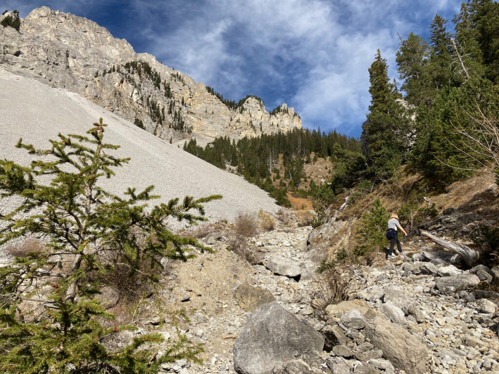 Alter Pfad auf der rechten Seite des Bachbetts, nach ca. 300m komplett abgerutscht, also Vorsicht!