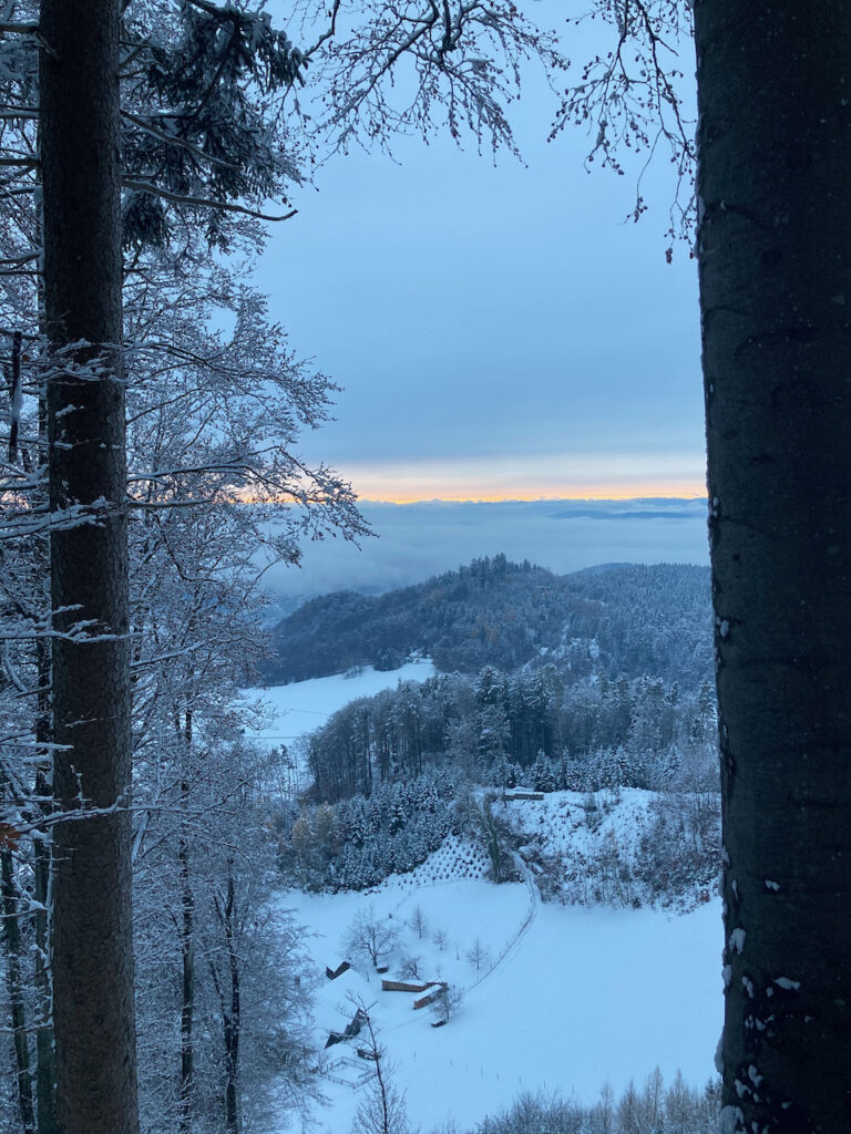 Eine winterliche Wanderung durchs Gümligental hoch zum Sendeturm und schliesslich über den stockfinsteren Äbnitwald zurück nach Bolligen… immerzu empfehlenswert!
