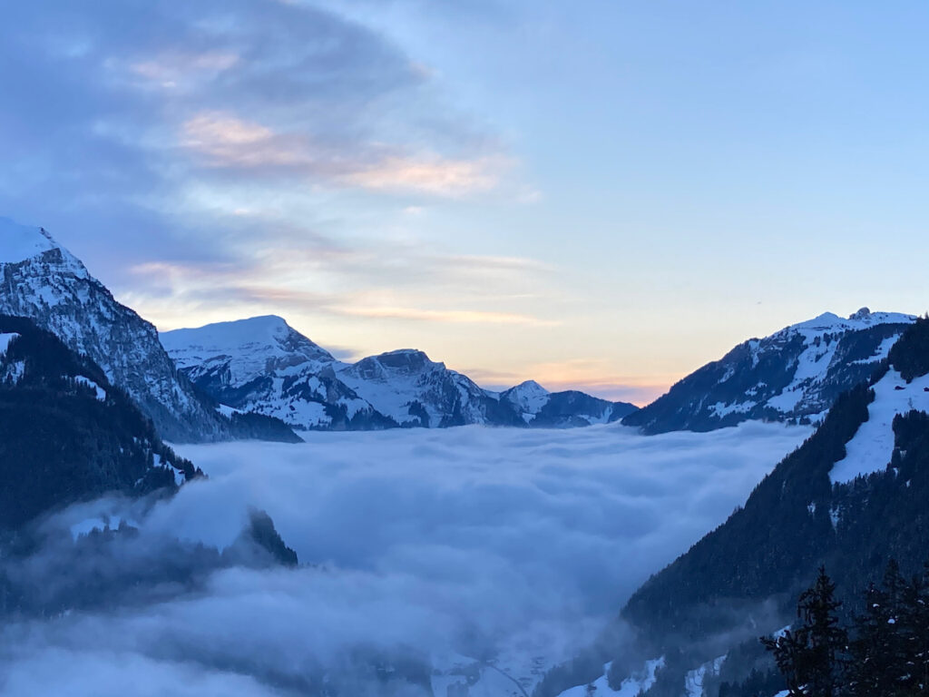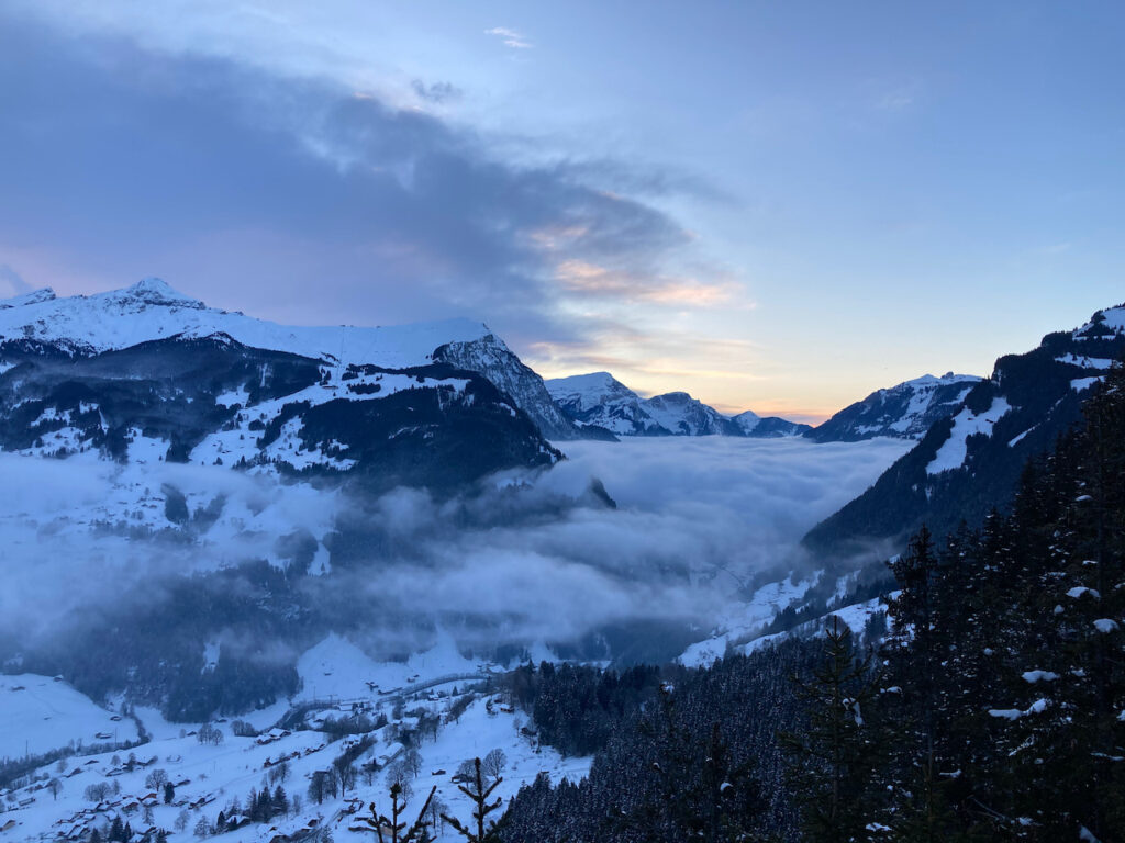 Quasi als Aufwärmrunde eignet sich die kurze Rundwanderung ab Bushaltestelle Naturfreundehaus hoch zum ehemaligen Restaurant Aellfluh (leider seit 2017 nicht mehr bewirtet), dann rechterhand dem Höhenweg folgend bis Oberhaus, knapp oberhalb der alten Sesselbahn-Mittelstation und schliesslich wieder runter zum Terrassenweg. Auch bei Schneetreiben und Nebel einfach begehbar, sofern Wege nicht vereist problemlos ohne Schneeschuhe…