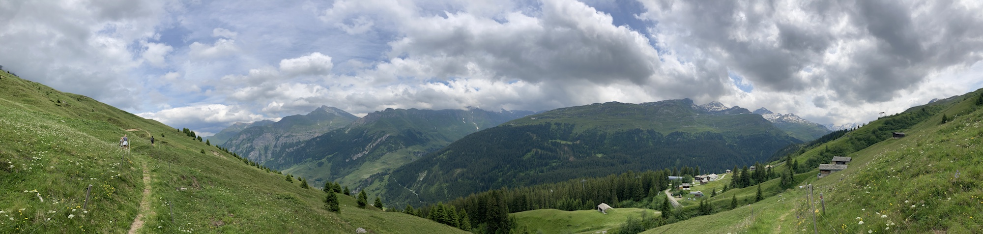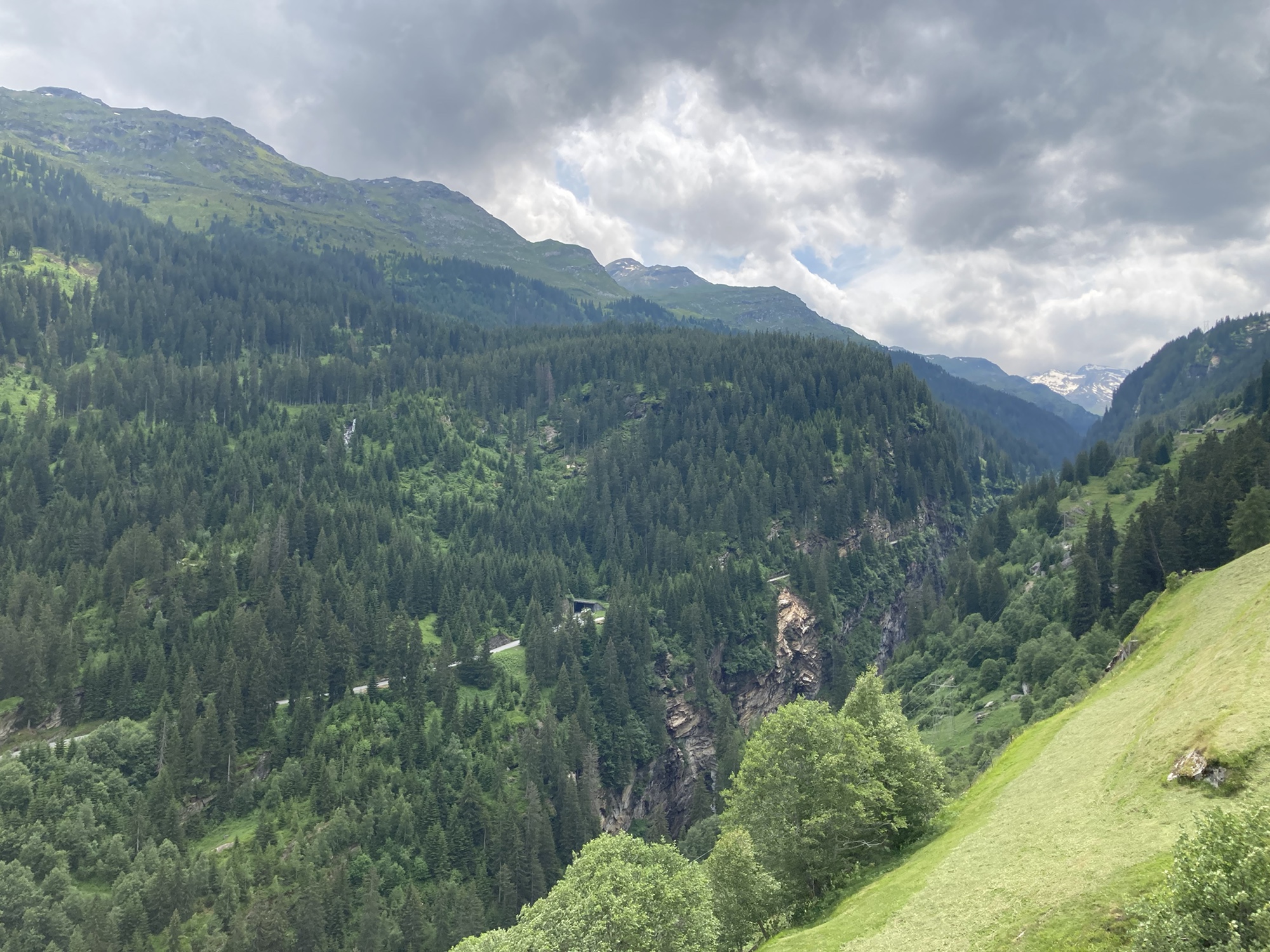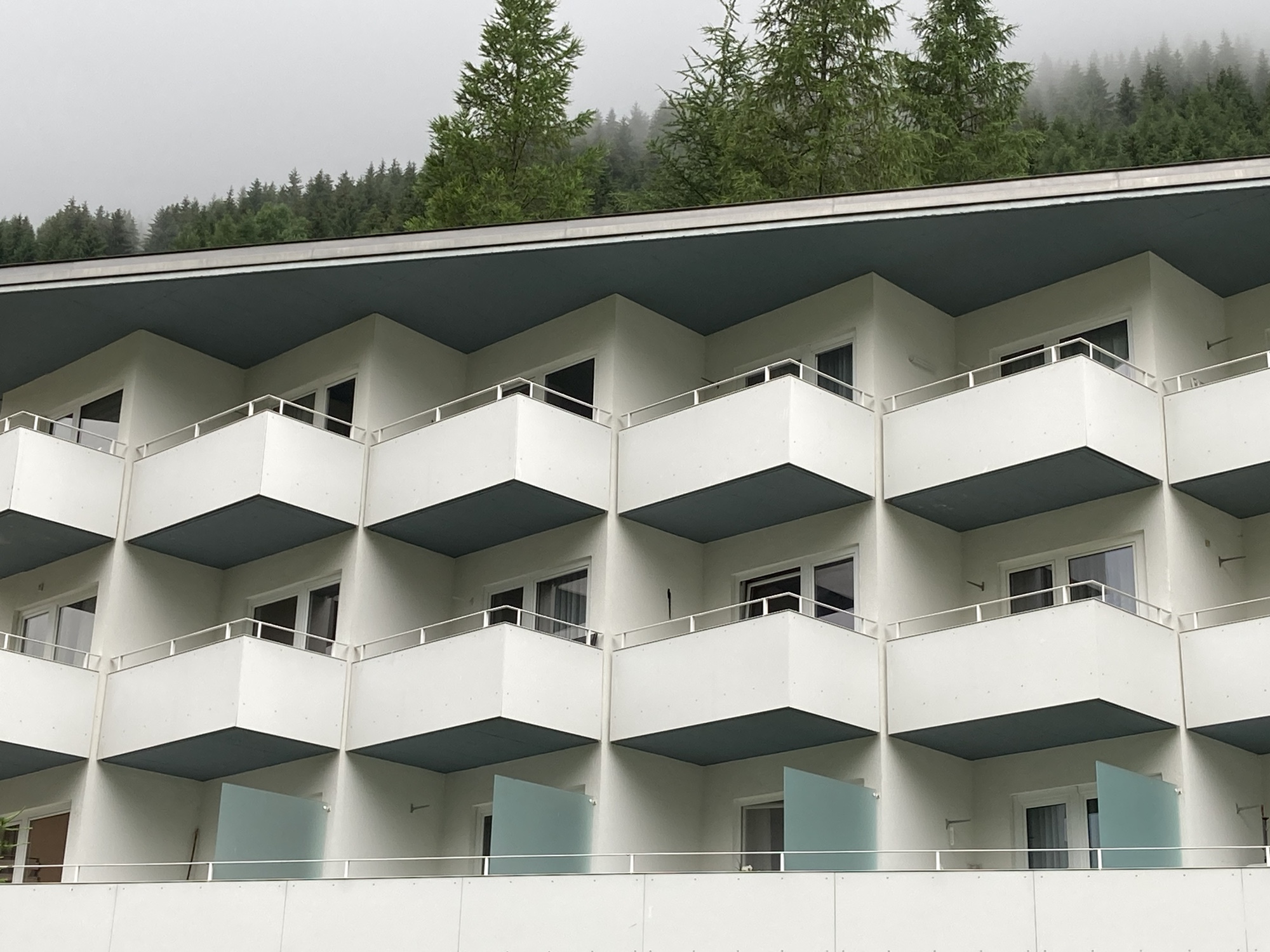 Da wir erst kurz nach Mittag mit dem Postauto ankamen, war vor dem herannahenden Gewitter nur kurz Zeit für eine kleine Wanderung. Schnurstracks peilten wir das kostenfrei nutzbare Gondeli hoch zur Gadastatt, wo wir nach einem kurzen Aufstieg zur Stafelti auf einem Höhenweg zur Hängela (hübsches kleines Berggasthaus mit Jurten zum Übernachten) rüber und schliesslich runter nach Vals laufen. Kurzweilig und bei schönem Wetter sicher der Knüller, vor allem die Aussicht zum Hora auf der gegenüberliegenden Talseite, bei dem vorherrschenden kalten Wind und dem anstürmenden Gewitter nur halb so lauschig! Viel lauschiger dafür unsere Bleibe, das Boutique-Hotel Brücke 49…