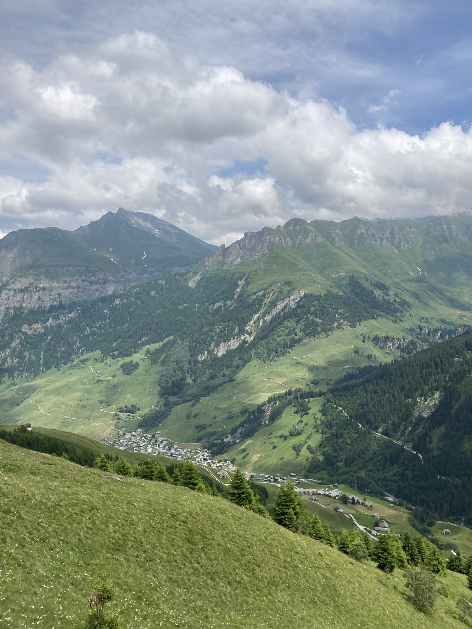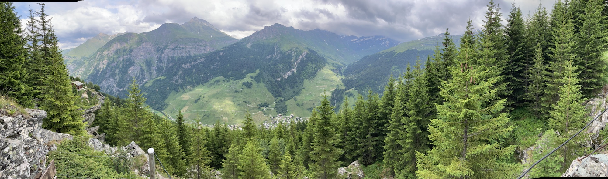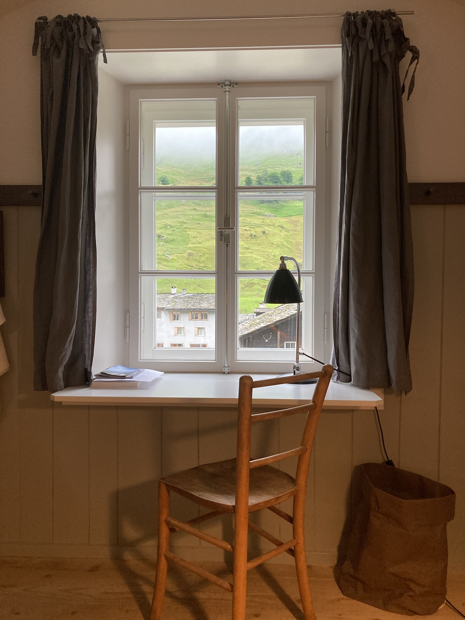 Da wir erst kurz nach Mittag mit dem Postauto ankamen, war vor dem herannahenden Gewitter nur kurz Zeit für eine kleine Wanderung. Schnurstracks peilten wir das kostenfrei nutzbare Gondeli hoch zur Gadastatt, wo wir nach einem kurzen Aufstieg zur Stafelti auf einem Höhenweg zur Hängela (hübsches kleines Berggasthaus mit Jurten zum Übernachten) rüber und schliesslich runter nach Vals laufen. Kurzweilig und bei schönem Wetter sicher der Knüller, vor allem die Aussicht zum Hora auf der gegenüberliegenden Talseite, bei dem vorherrschenden kalten Wind und dem anstürmenden Gewitter nur halb so lauschig! Viel lauschiger dafür unsere Bleibe, das Boutique-Hotel Brücke 49…