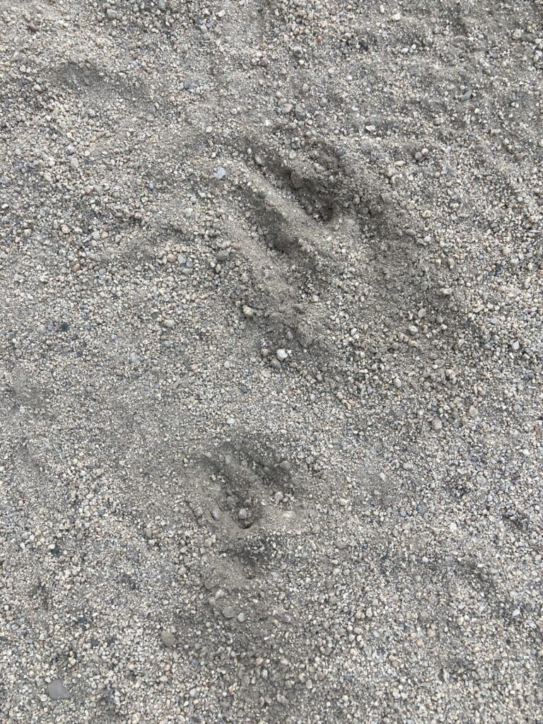 Der heutige Tag beginnt für einmal geplant sehr früh, die wenigen verlässlichen Wasserquellen auf dem Abschnitt bis Kennedy Meadows sind die Ursache, was heute ein paar – vor allem amerikanische Hiker:innen – schmerzhaft erfahren werden… Knapp 30 Meilen stehen auf meinem Programm, darum schellt der Wecker bereits um fünf Uhr. Frühstücken und Sachen packen, mit einer gewissen Genugtuung blicke ich auf die noch schlafenden Cowboy-Camper; für einmal bin ich der erste! 😄 Die Luft ist wunderbar kühl und das Laufen auf dem federnden Waldboden macht Laune, ich komme gut voran, die Sonne geht auf und mein Stimmungsbarometer steigt. Interessiert suche ich den Boden nach Spuren ab, finde nebst den Hufabdrücken wie schon am Vortag nur einen Abdruck mit Krallen, der Rest ist von Turnschuhsohlen. Vermutlich ist der bekrallte Abdruck von einem wegspurtenden Hasen, davon habe ich einige gesehen. Wem das knöcherne Rückgrat, das weiter vorne am Wegesrand gehört, kann ich beim besten Willen nicht bestimmen. Da heute mein Magen bereits eine Stunde nach dem Frühstück wieder knurrt, lege ich bei der nahegelegenen Quelle eine Rast ein, gegen ein zweites Frühstück habe ich heute nichts einzuwenden.