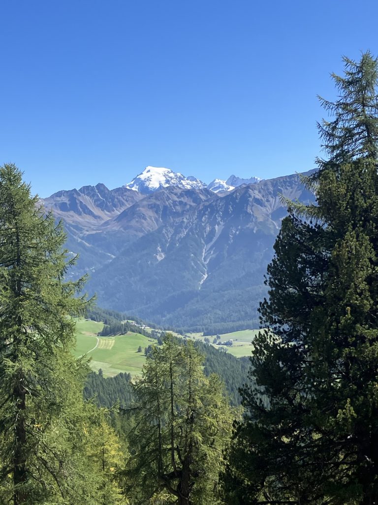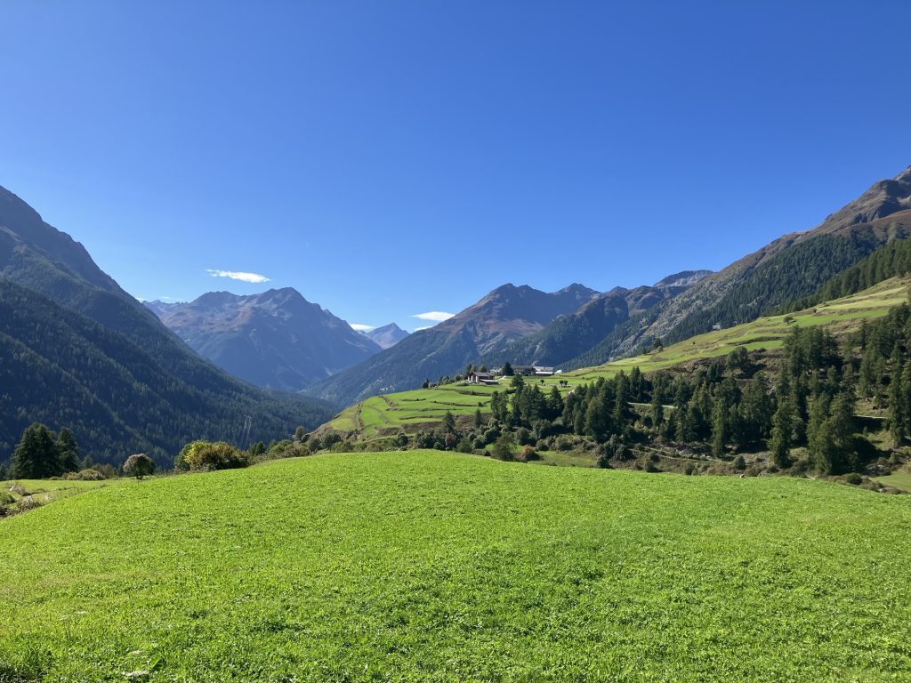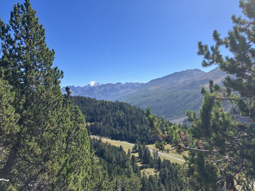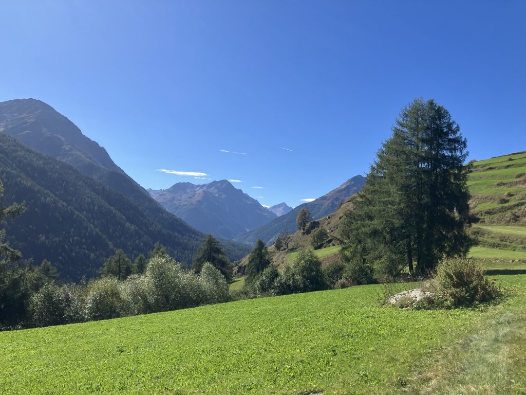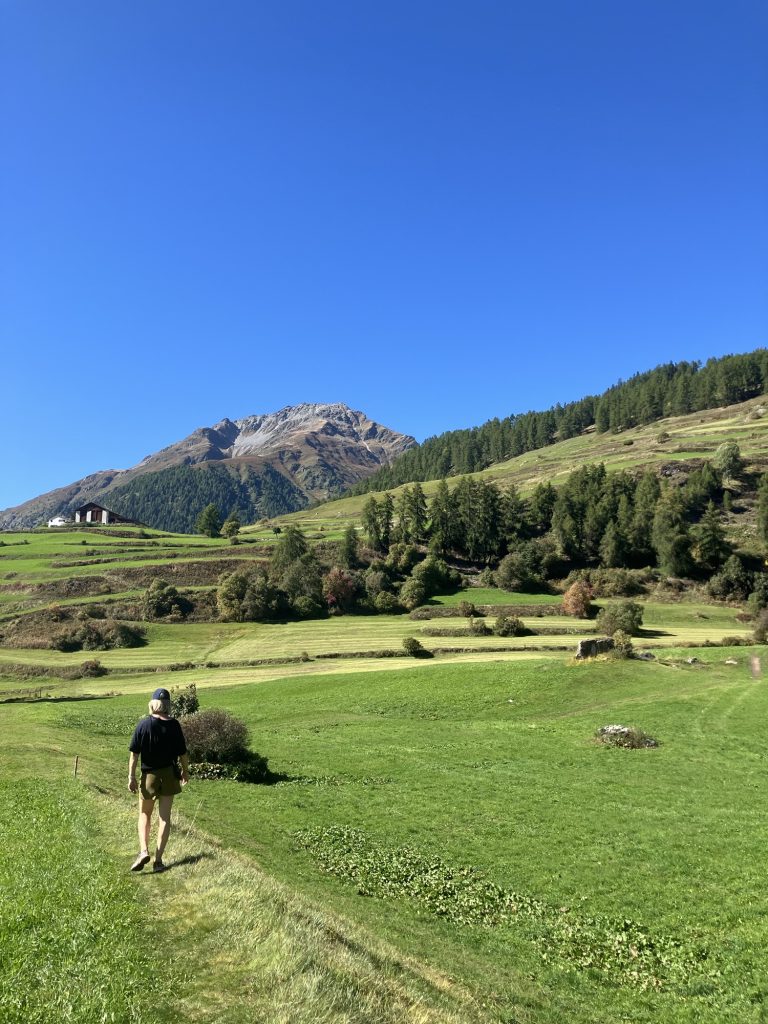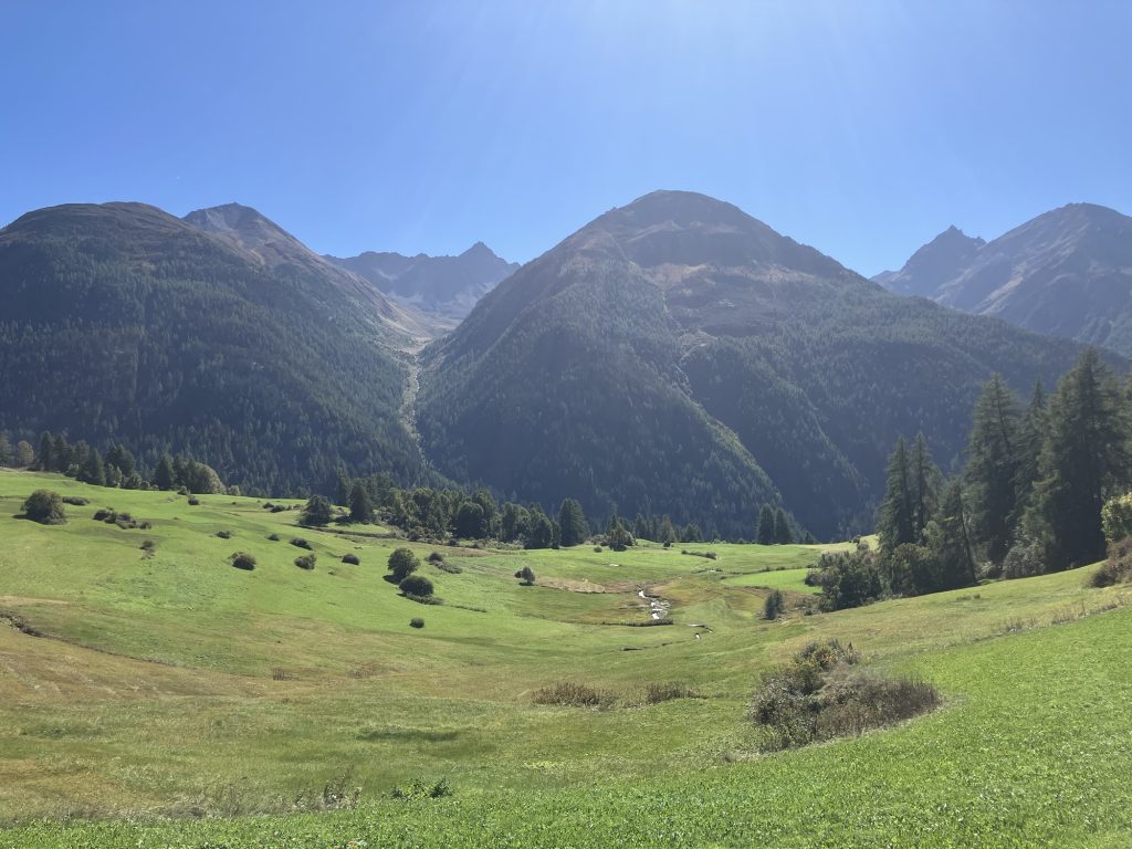 Unsere erste Wanderung führt uns vom Ofenpass auf der nördlichen Talseite des Val Müstair entlang zur Alp da Munt, immerzu den Blick auf das Massiv des Piz Umbrail vor Augen.
